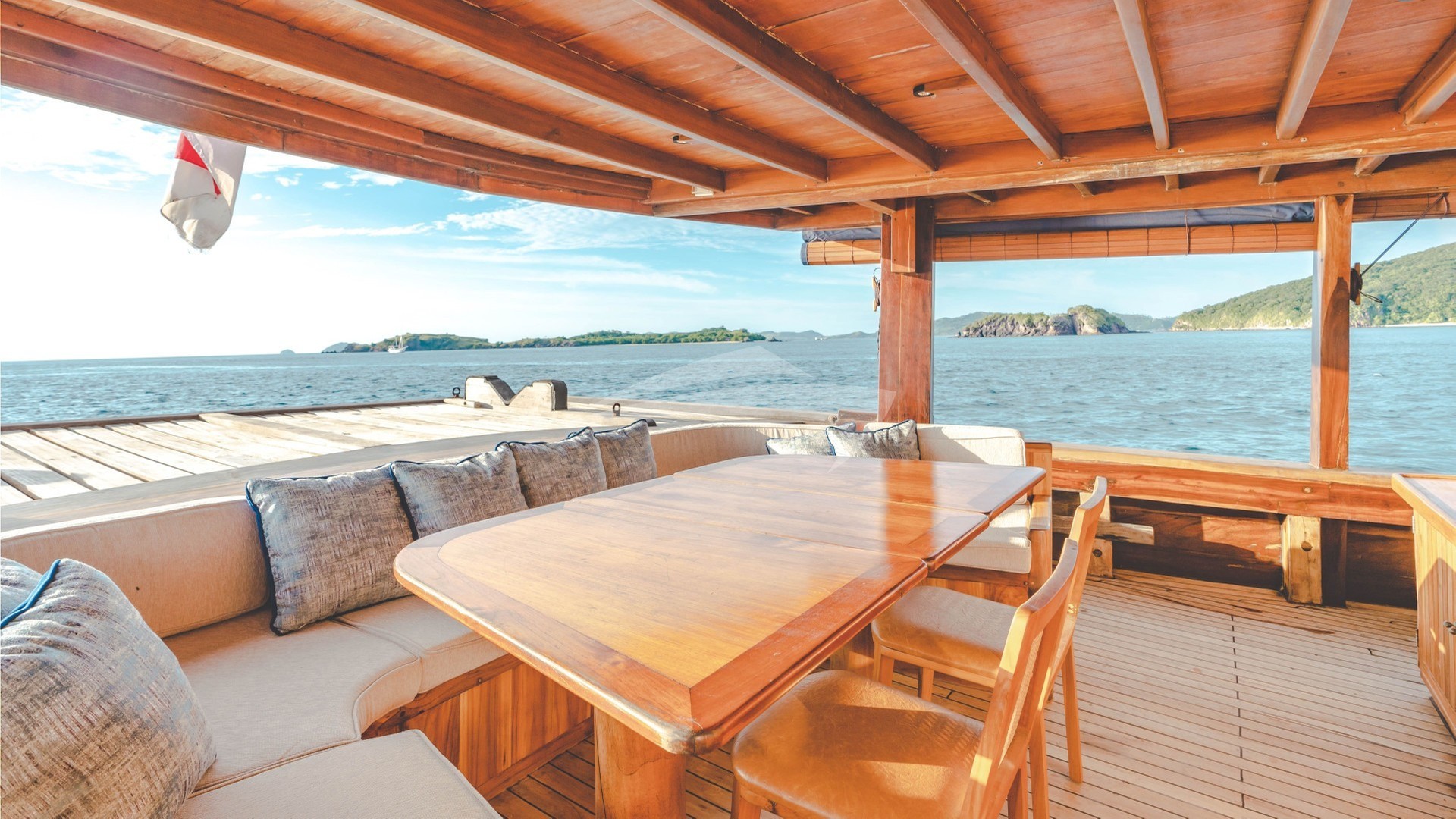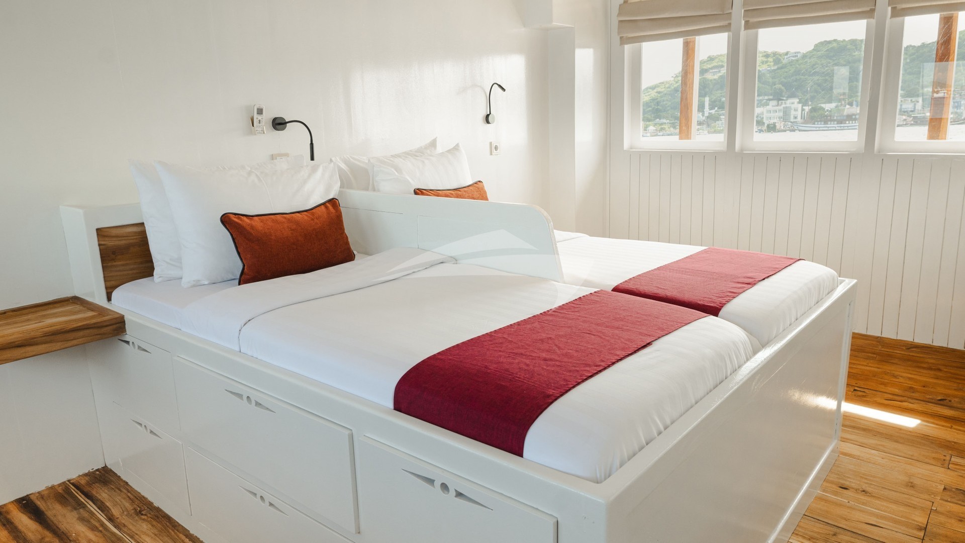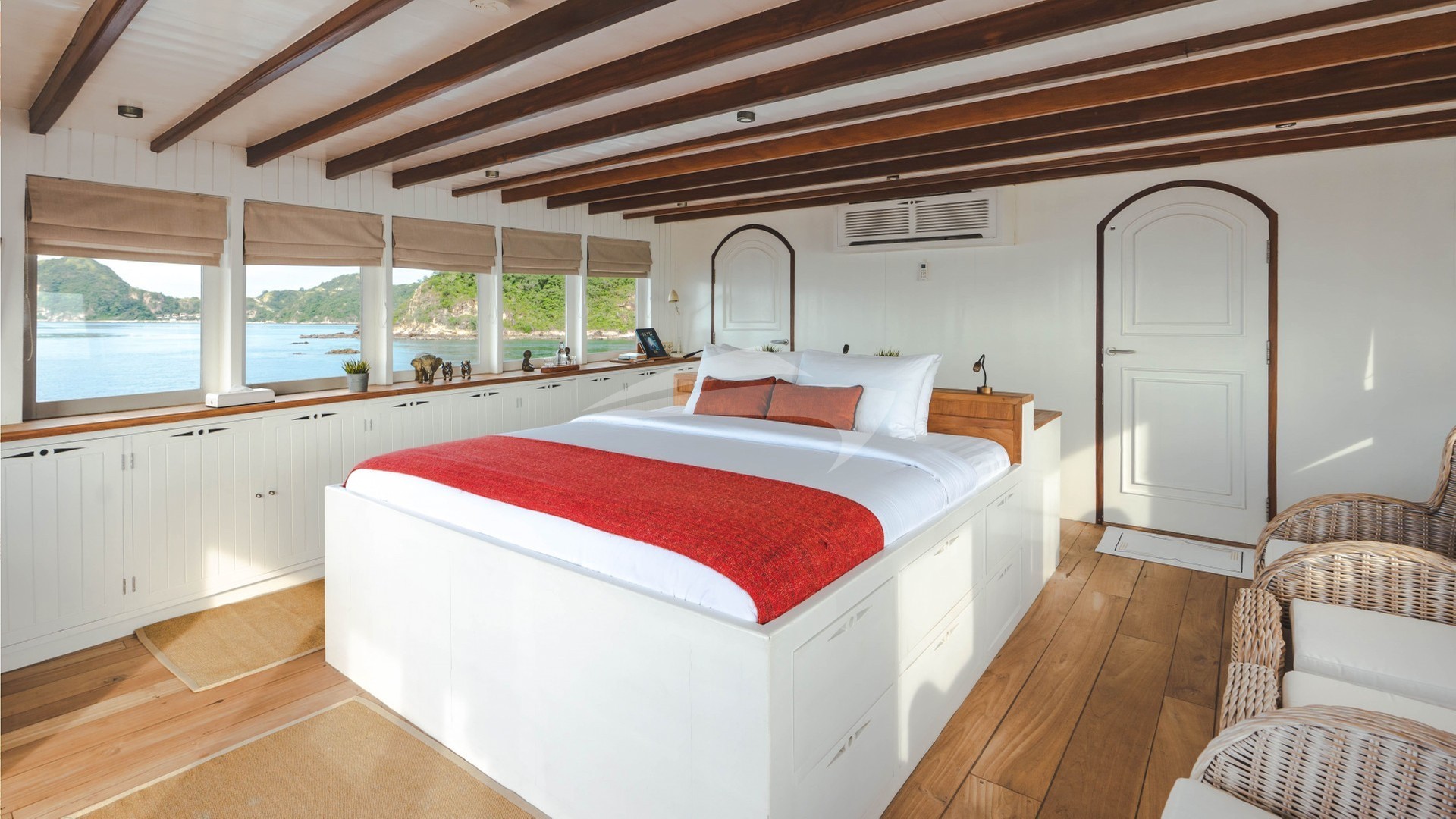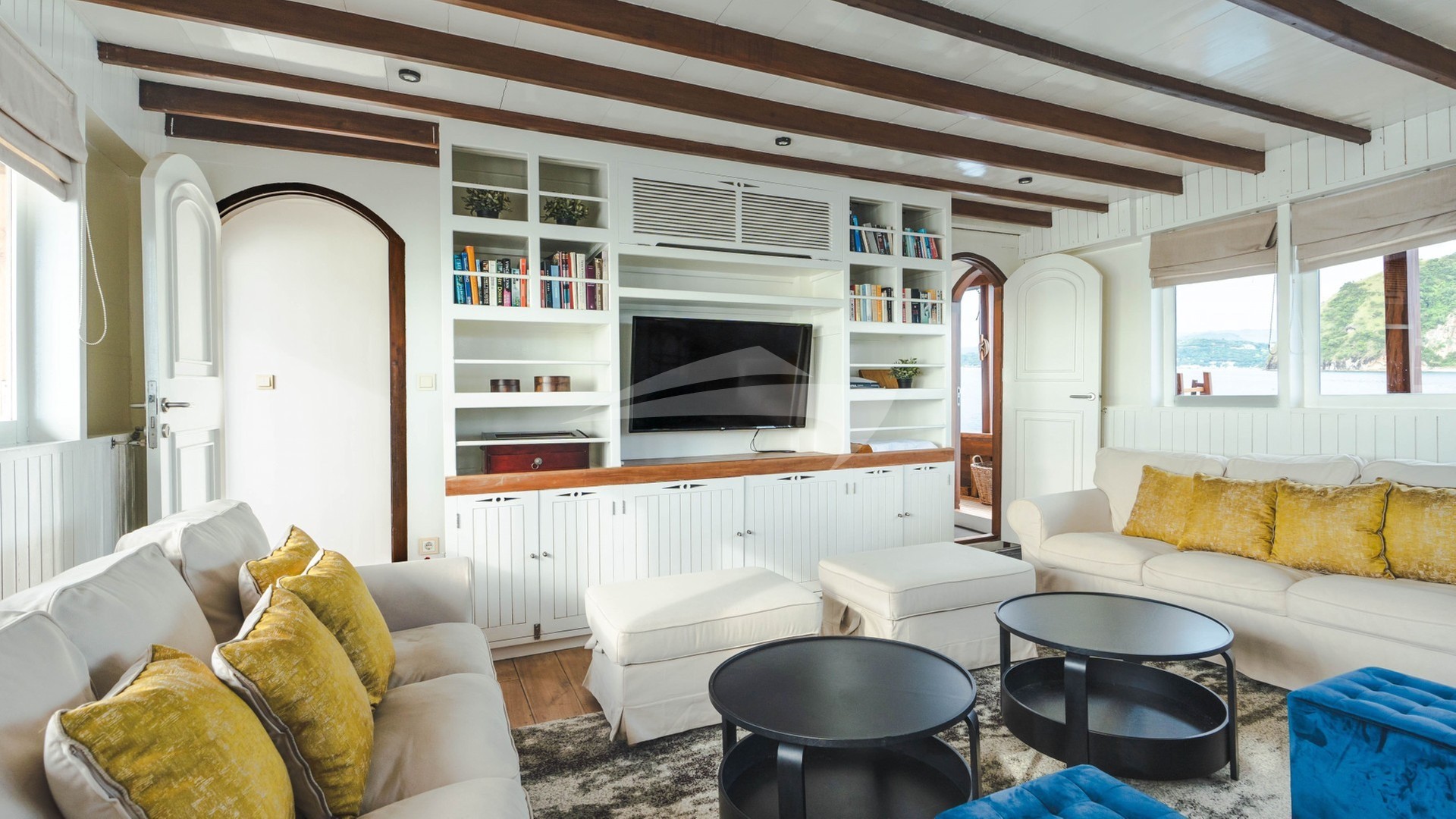 Mischief is designed to comfortably host up to 6 guests in 3 ensuite cabins. The accommodations include a Master cabin with a double bed, a VIP cabin with a double bed, and a Guest cabin that can be arranged with twin beds or a double bed, each with its own private ensuite bathroom.
