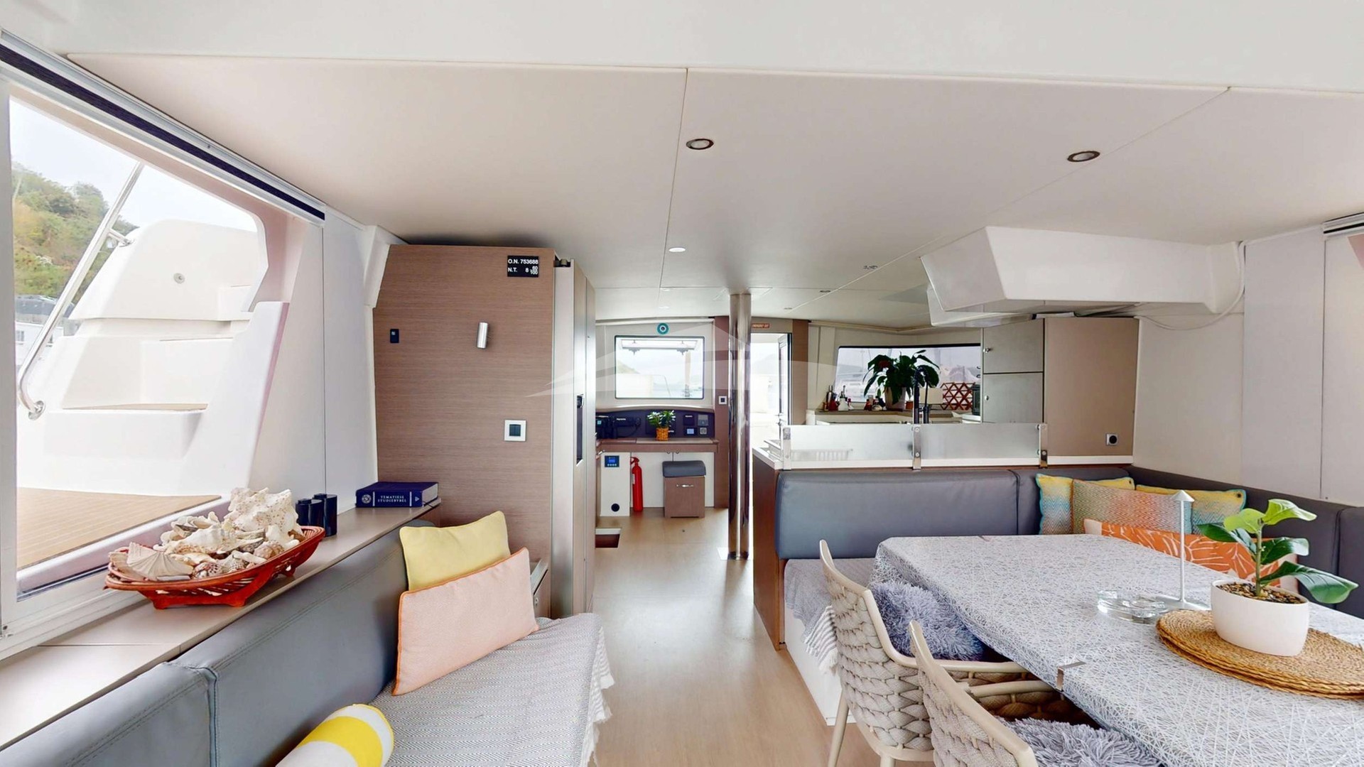 MY MARINA, a stunning 2022 Bali 48 sailing catamaran designed for spacious, comfortable, and adventure-filled charters. With accommodations for up to 6 guests in 3 luxurious en-suite cabins (2 Queens and 1 king), this yacht offers the perfect blend of relaxation and excitement. Its expansive indoor and outdoor living spaces, including a wide 24’ beam, alfresco dining area, and sun loungers, provide breathtaking ocean views and seamless indoor-outdoor living. For adventure seekers, MY MARINA comes fully equipped with stand-up paddleboards, snorkeling gear, a trolling and jigging fishing setup, and an electric boarding ladder, ensuring unforgettable water experiences. After a day of exploring, unwind with a BBQ under the stars, onboard WiFi, a premium music system, and a projector for outdoor movie nights. With a dedicated captain and crew ensuring a seamless and tailored charter experience, MY MARINA is the perfect escape for those looking to sail in style, comfort, and adventure.