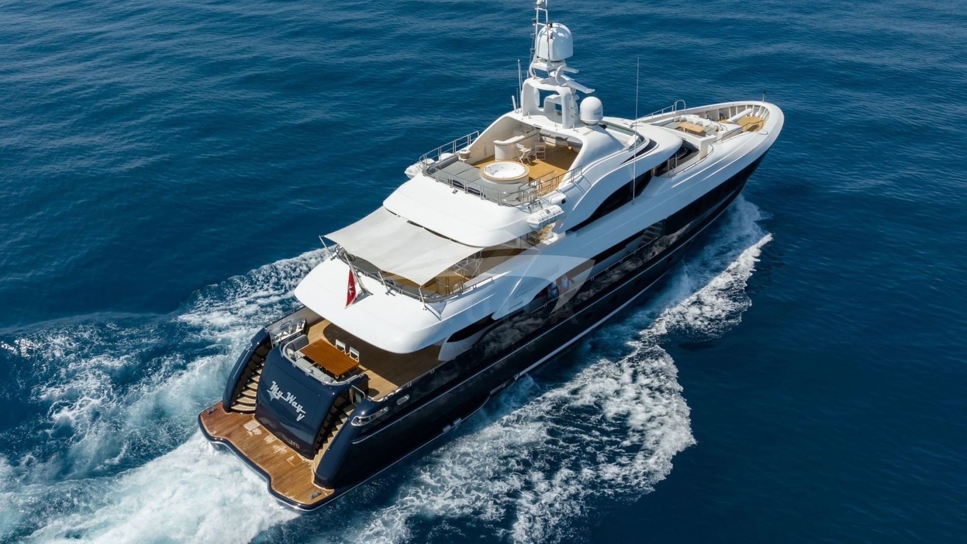 My Way V Yacht Charter is a 131' superyacht built by Mondo Marine in 2005. She sleeps 10 and holds 7 crew and is located in West Mediterranean and West Mediterranean. She can be booked for a private luxury charter at a rate of $145,613 per week. Please check with your Denison Charter Specialist for more info.