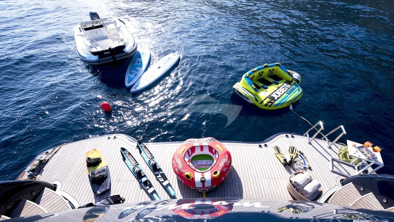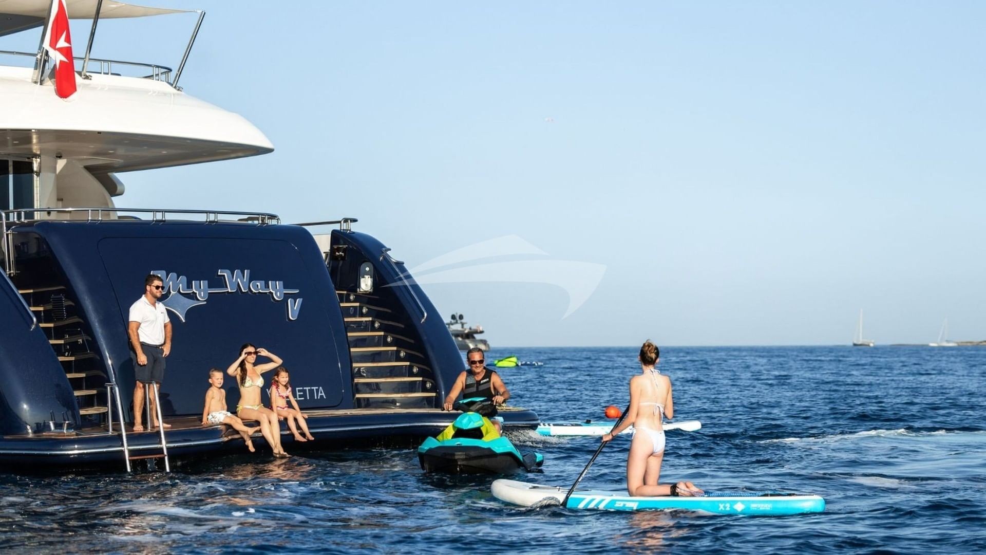 Indulge in the ultimate relaxation as you soak in the on-deck Jacuzzi, taking in breathtaking views of the South of France and beyond. For thrill-seekers, MY WAY V offers an impressive array of water toys, including jet skis, wakeboards, water skis, and even a water slide, promising endless entertainment for guests of all ages. Diving and snorkeling equipment are also available for underwater exploration of the Mediterranean's crystal-clear waters.