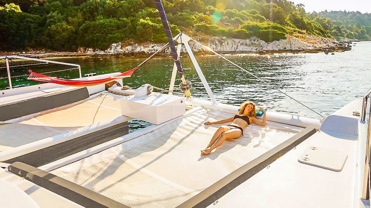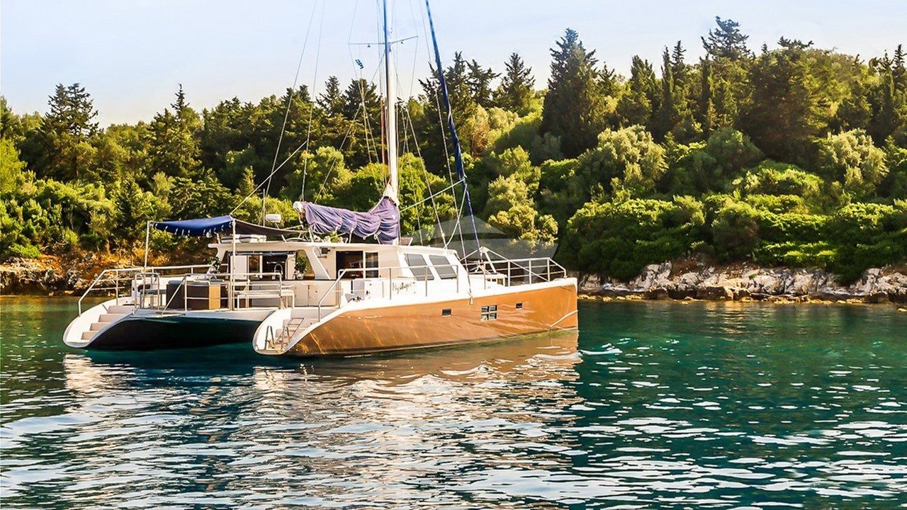 Mystique is a luxury crewed 70 ft sailing catamaran, available for charter throughout Greece.