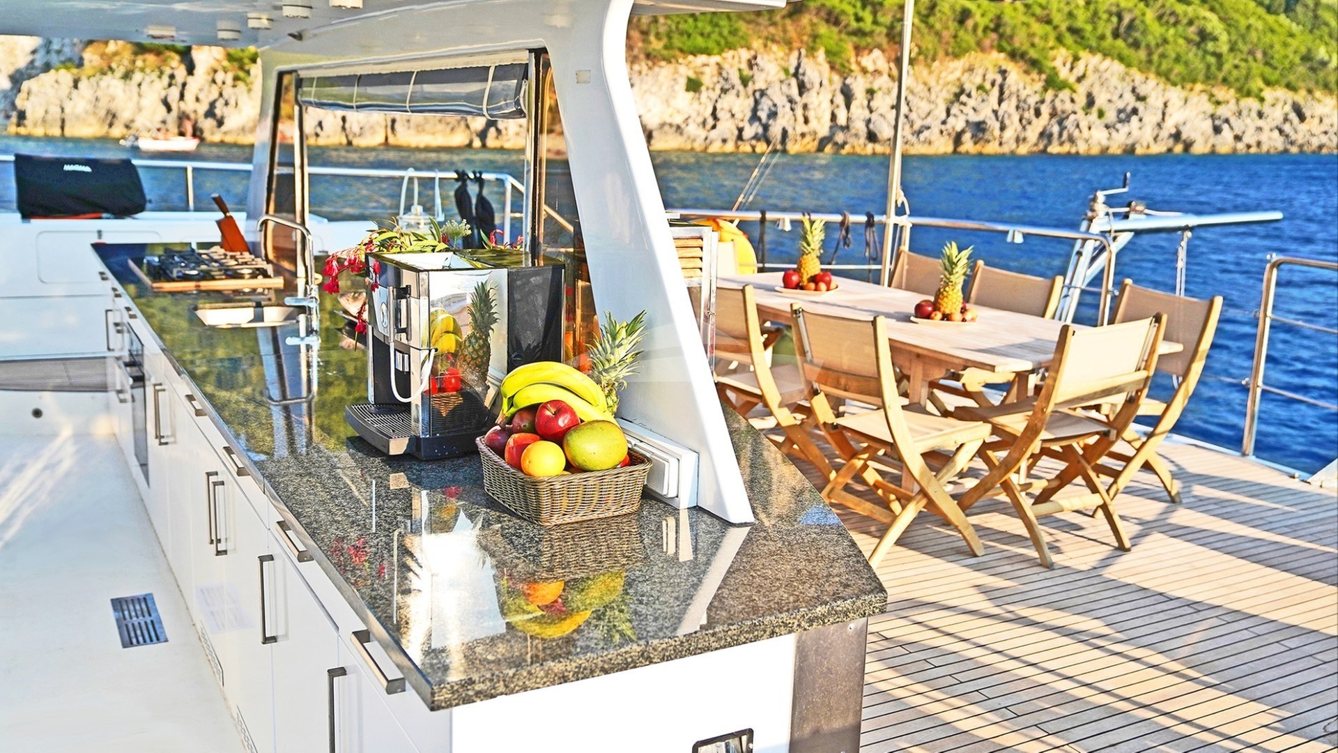 Mystique is sheer luxury on the water and is a cut above the rest. She is one of the most beautiful and largest sailing catamarans available in the eastern Mediterranean. The high quality bedding, linen, crockery, cutlery and glassware is normally to be found in the top tier 5 star hotels rather than at sea.
