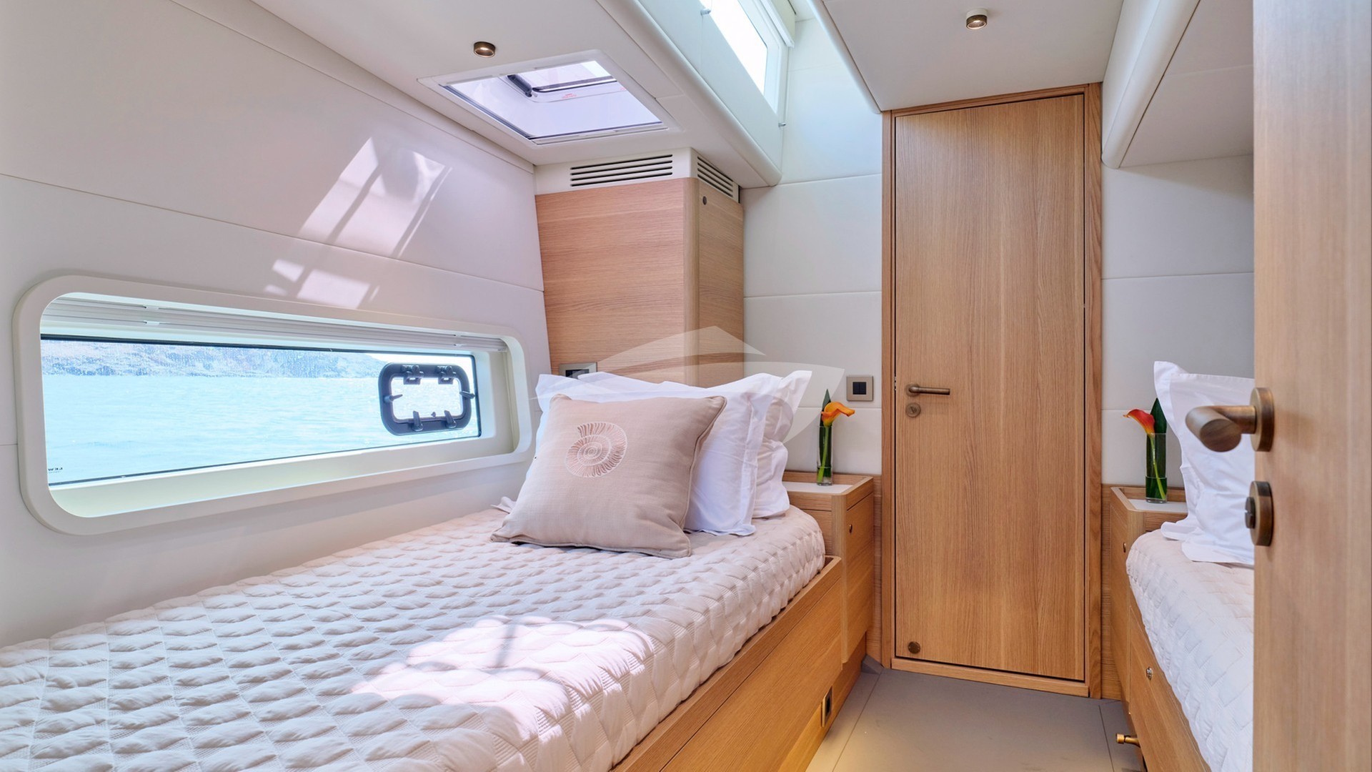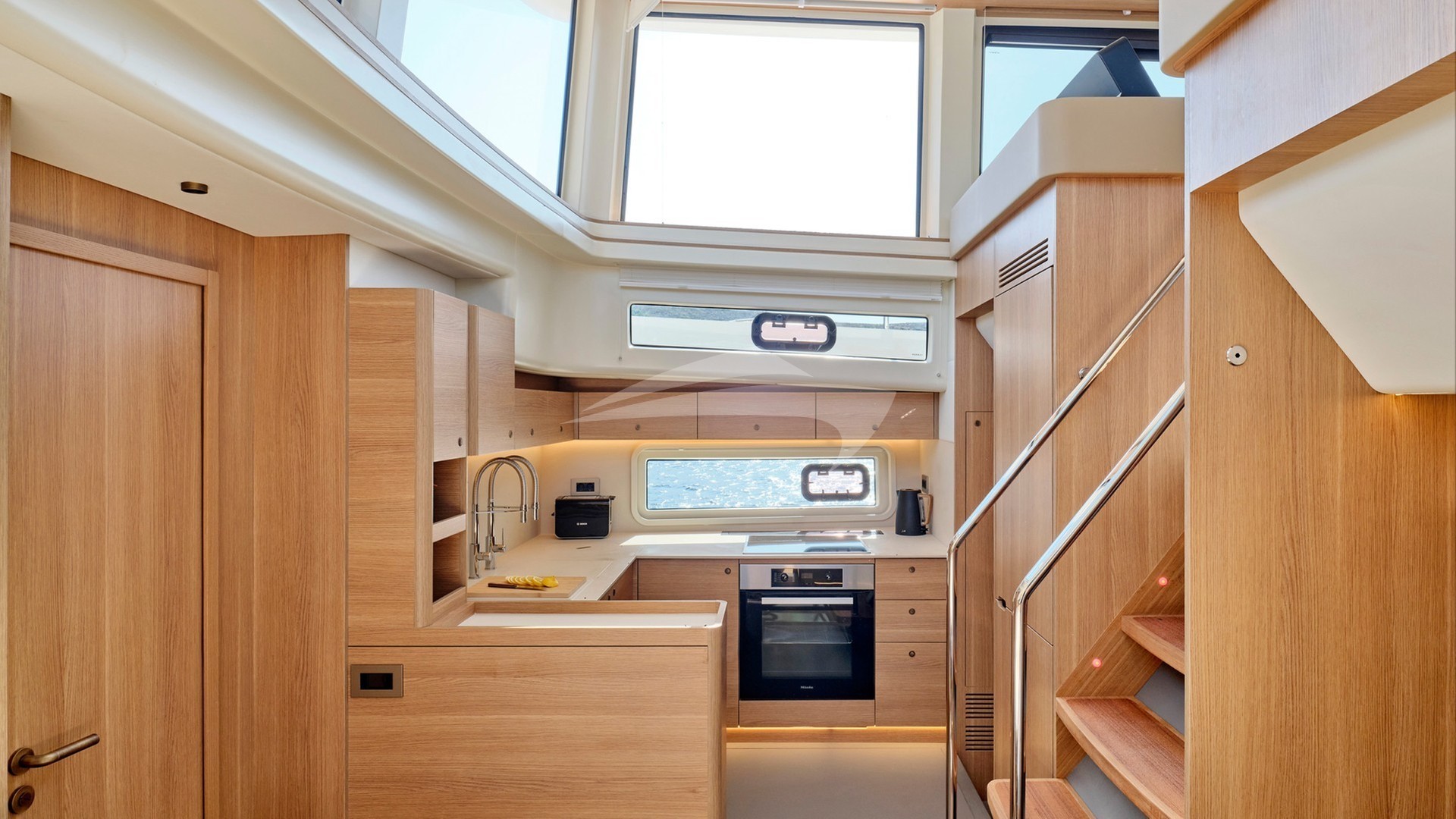 Inside, N.ICE features a 3-cabin layout designed to maximize space, light, and privacy. Large panoramic windows flood the interior with natural light, creating a seamless connection between sea and space. The open-plan salon includes a designer galley, a lounge area, and direct access to the spacious aft deck—perfect for al fresco dining or sunset cocktails. Her exterior offers generous lounging spaces, and a hydraulic swim platform designed to enhance both relaxation and adventurous cruising experience.