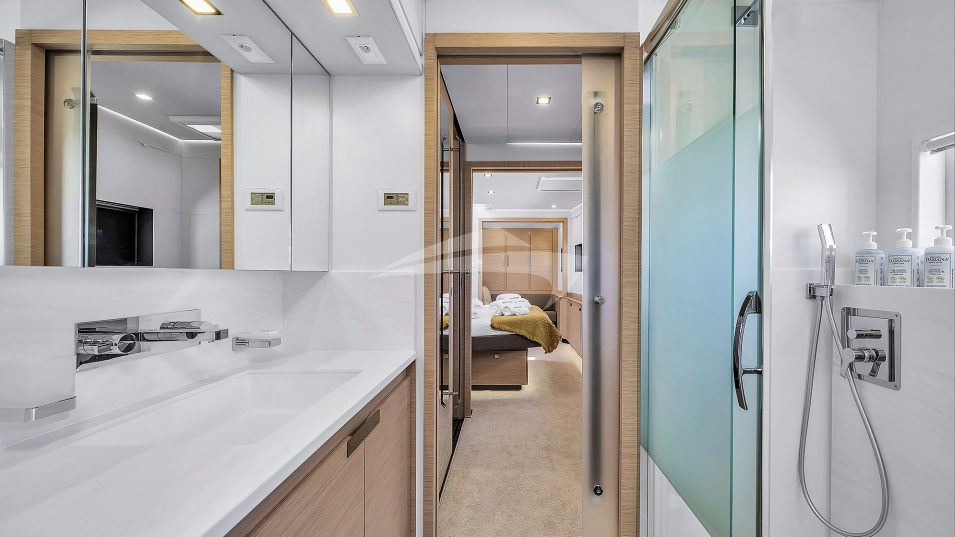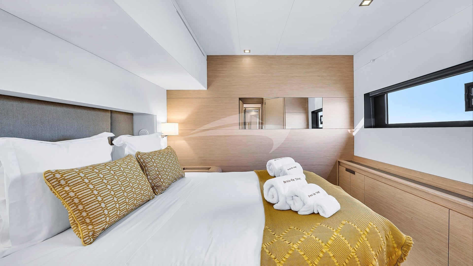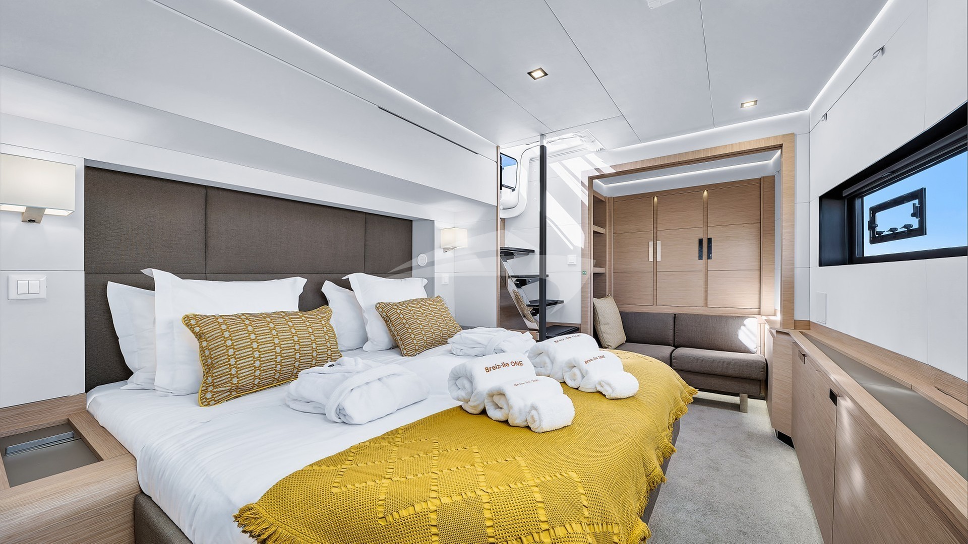 Her many spaces, all of which can be fully opened for remarkable connectivity, her myriad of carefully selected comforts, her variety of nautical activities and her 3 experienced crew guarantee guests unforgettable moments on board.