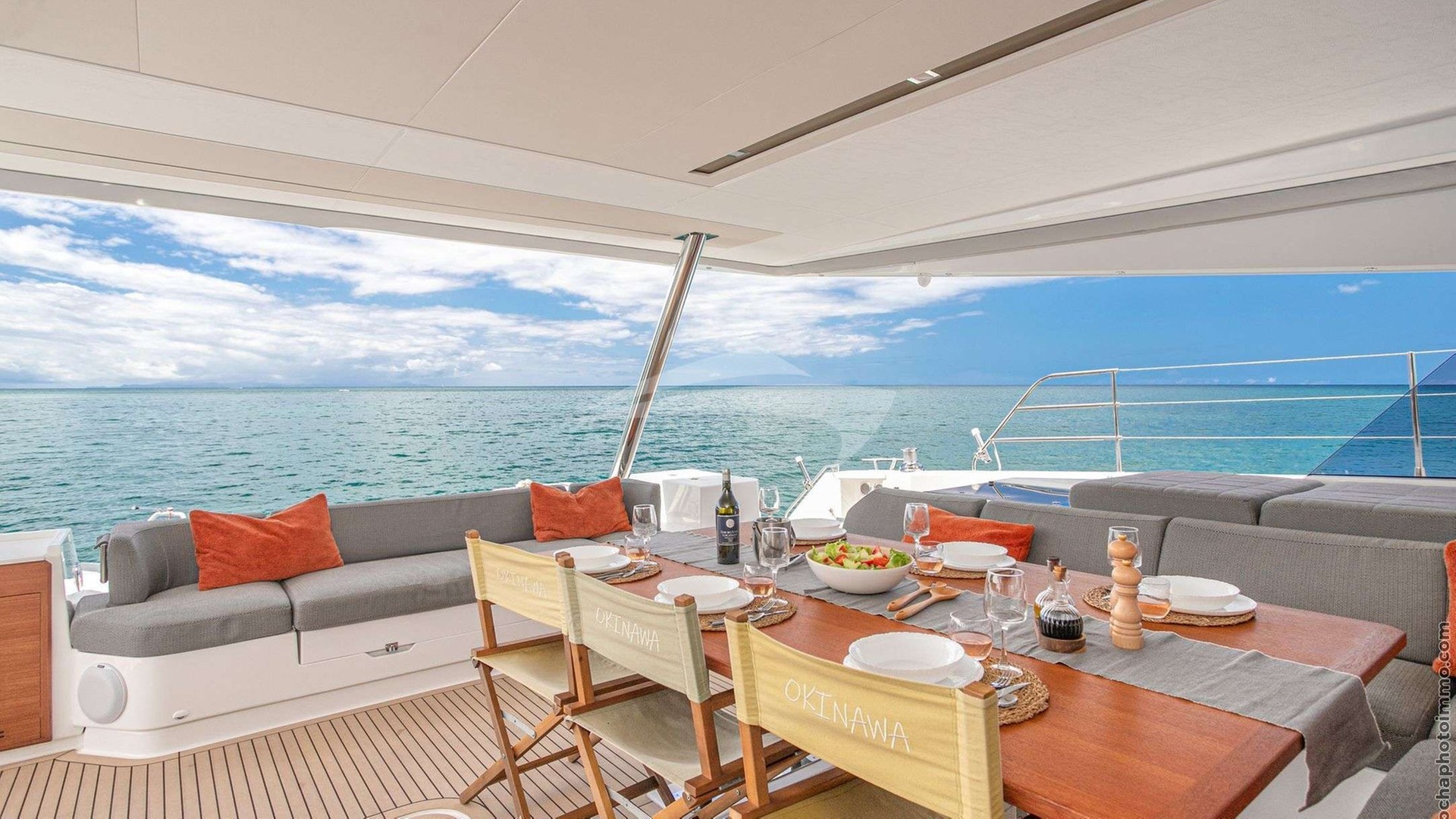 Okinawa Yacht Charter is a 59' superyacht built by Fountaine Pajot in 2024. She sleeps 10 and holds 3 crew and is located in Caribbean, West Mediterranean and Caribbean, West Mediterranean. She can be booked for a private luxury charter at a rate of $42,000 per week. Please check with your Denison Charter Specialist for more info.
