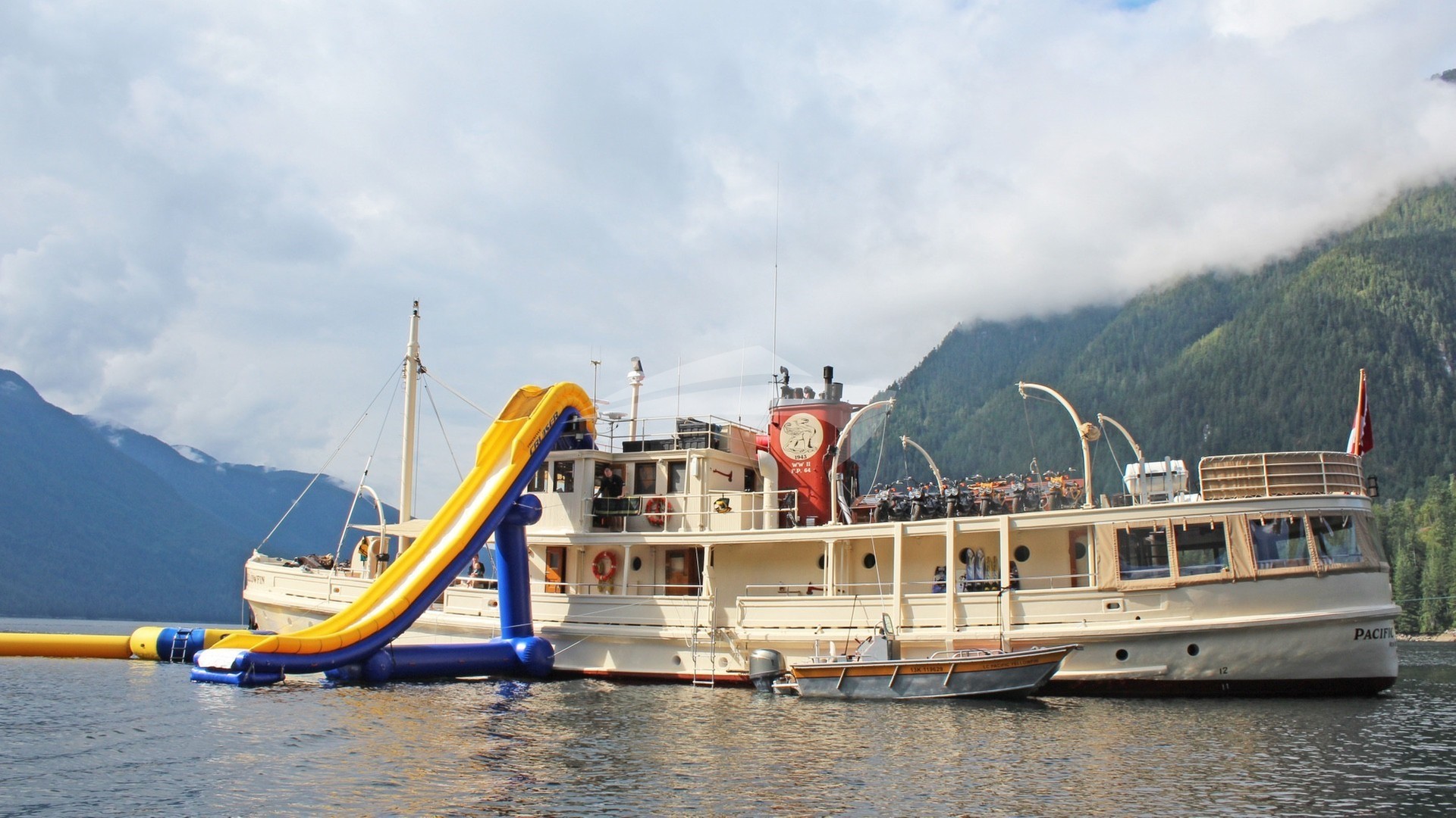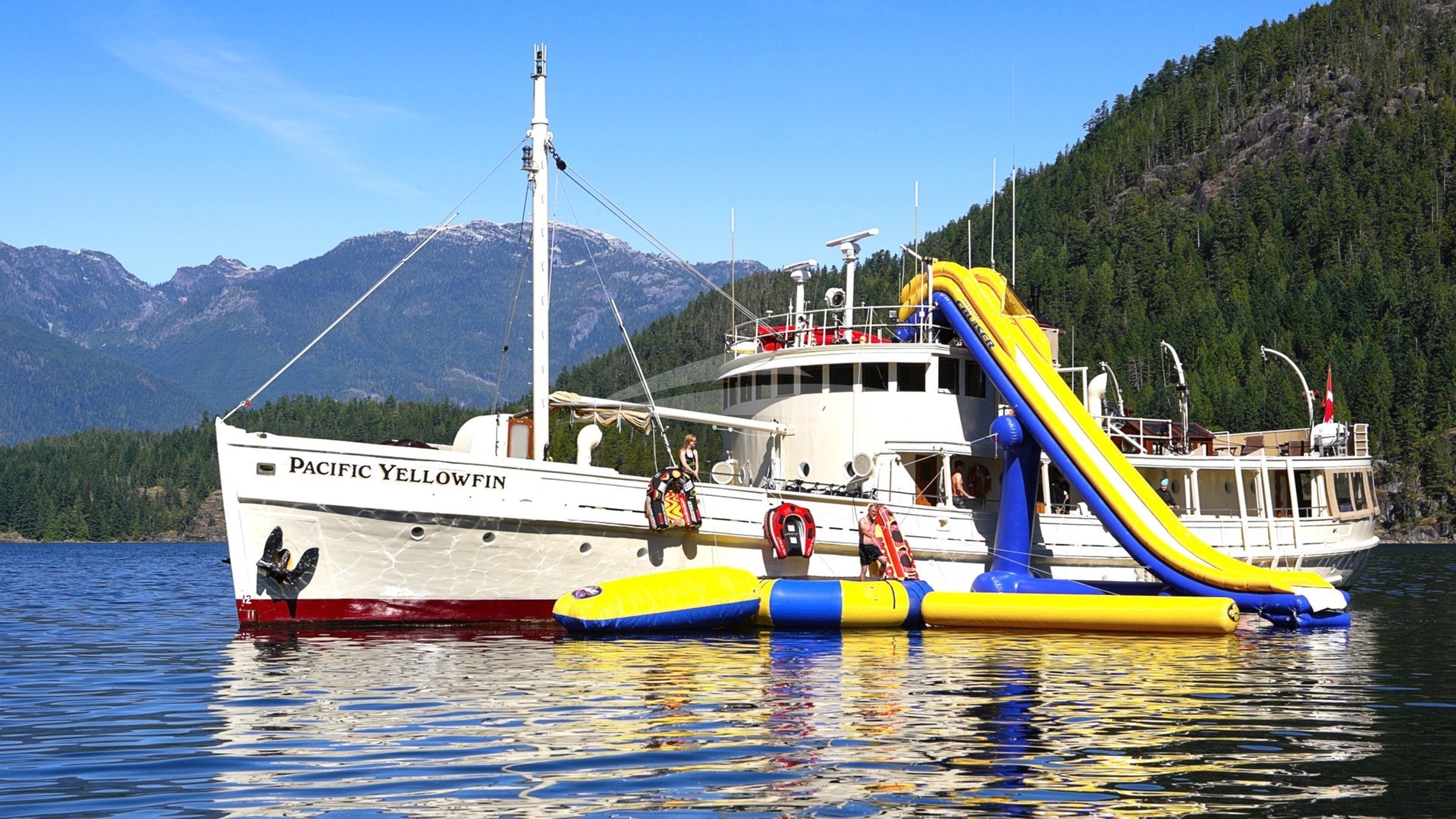 One of Vancouver's leading interior design firms, Robert Ledinghan, created a superb decor. Combining gourmet cuisine and selected fine wines, the Pacific Yellowfin offers the finest in hospitality. A full array of tenders, water toys, kayaks, motorized scooters and mountain bikes allow a full experience of the area, both afloat and ashore.
