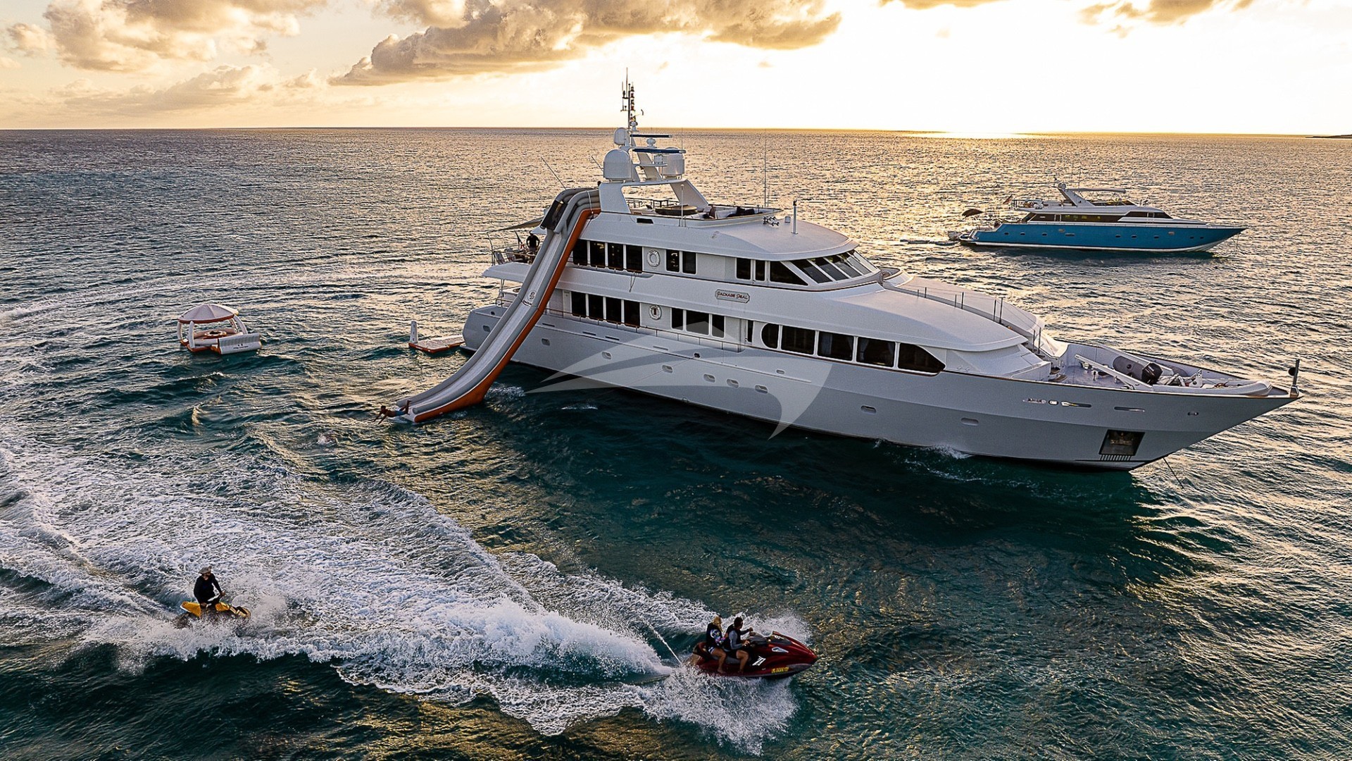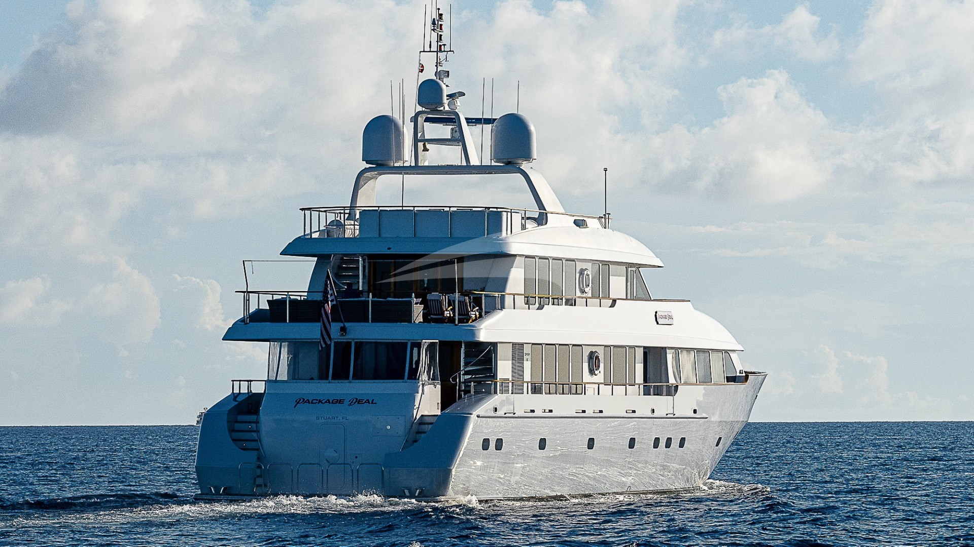 Package Deal Yacht Charter is a 131' superyacht built by Trident in 1999. She sleeps 11 and holds 7 crew and is located in Caribbean and Caribbean. She can be booked for a private luxury charter at a rate of $128,000 per week. Please check with your Denison Charter Specialist for more info.