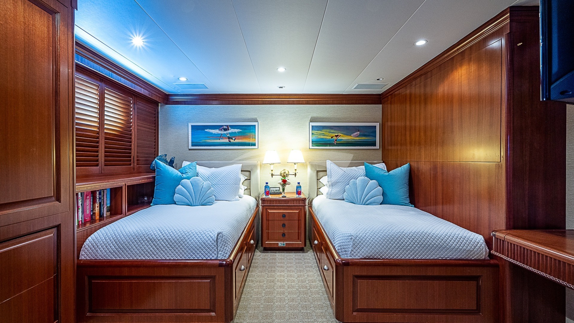PACKAGE DEAL boasts comfortable accommodations for 11 guests in 5 spacious suites. The 5 suites include a Master Suite, VIP Suite, 2 queen suites and a twin suite.