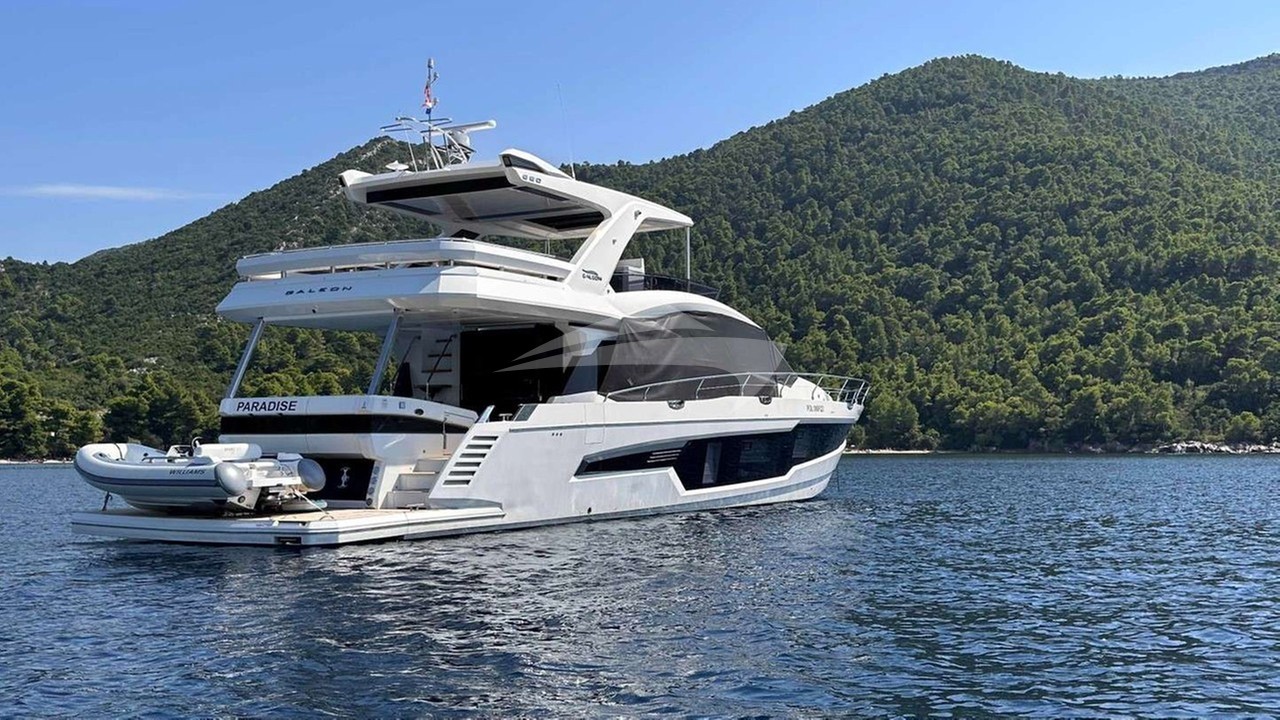 Paradise Yacht Charter is a 71' superyacht built by Galeon in 2022. She sleeps 8 and holds 2 crew and is located in East Mediterranean and East Mediterranean. She can be booked for a private luxury charter at a rate of $32,571 per week. Please check with your Denison Charter Specialist for more info.