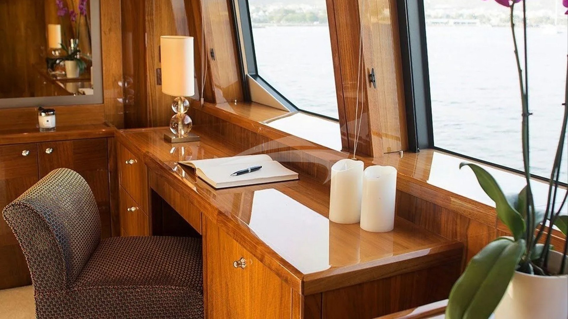 PATHOS boasts an impressive layout featuring six luxurious staterooms that can accommodate up to 12 discerning guests. The yacht's crown jewel is its upper deck Master Suite, complete with a private sauna, walk-in closet, and balcony doors that open to breathtaking panoramic views. For ultimate flexibility, two additional double staterooms and two convertible twin cabins ensure that every guest enjoys personalized comfort.
