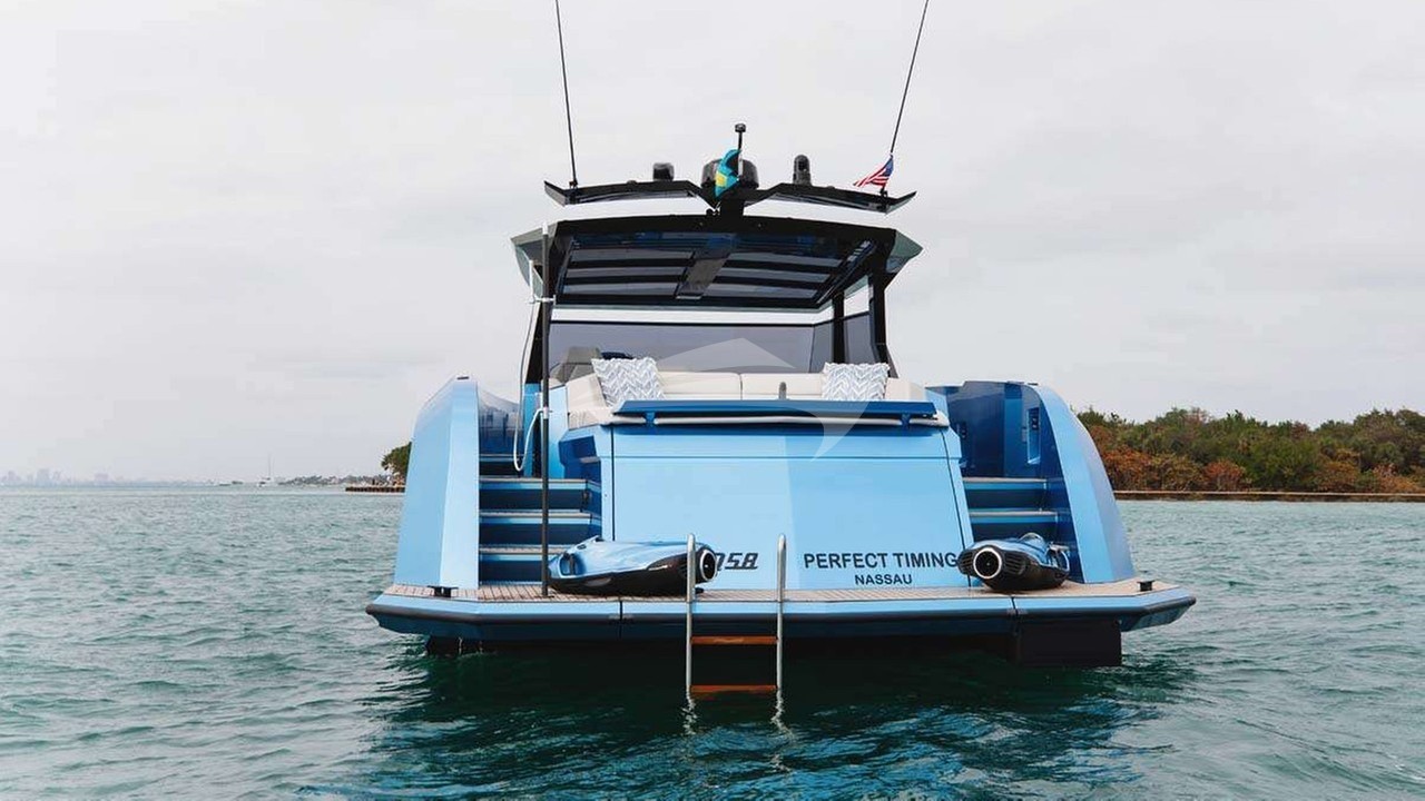Perfect Timing Yacht Charter is a 58' superyacht built by Custom in 2024. She sleeps 2 and holds 1 crew and is located in Caribbean, East Coast United States and Caribbean, East Coast United States. She can be booked for a private luxury charter at a rate of $51,000 per week. Please check with your Denison Charter Specialist for more info.