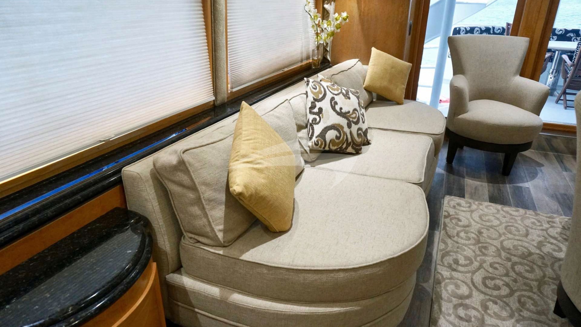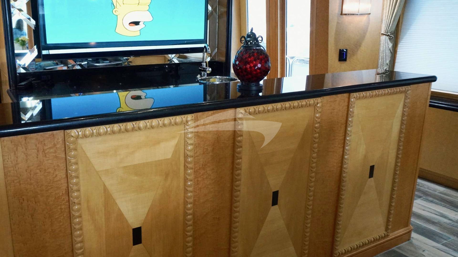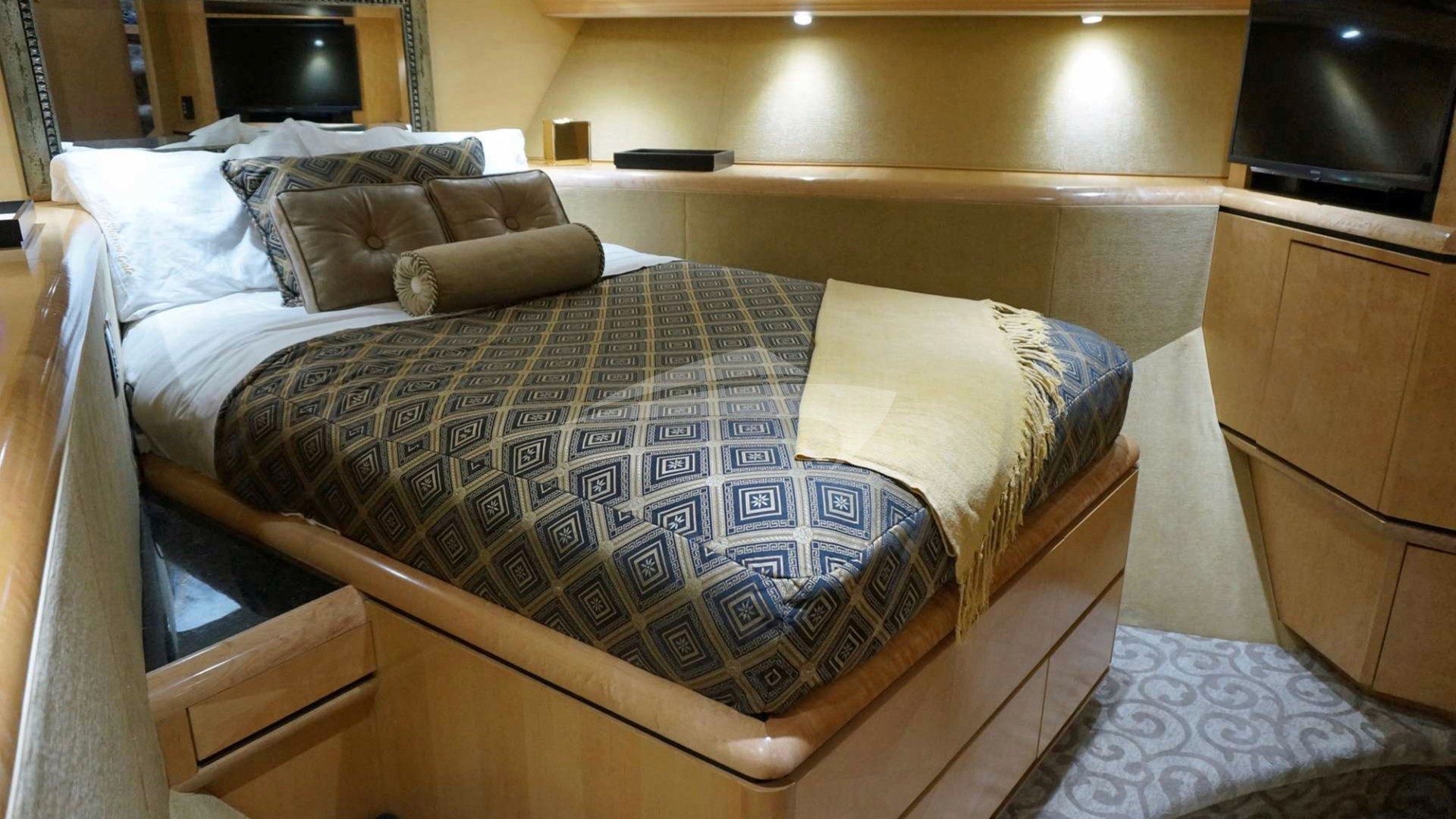 Below, the master stateroom features a king size bed, large flat screen TV with all of the entertainment options, cedar lined closet and his-and-hers baths. Two of the guest staterooms are identical, and offer a double bed in addition to one twin bed in each cabin. A VIP stateroom is unusually large, and features a queen size bed, very large and comfortable en suite bathroom with shower and occupies the entire bow area.