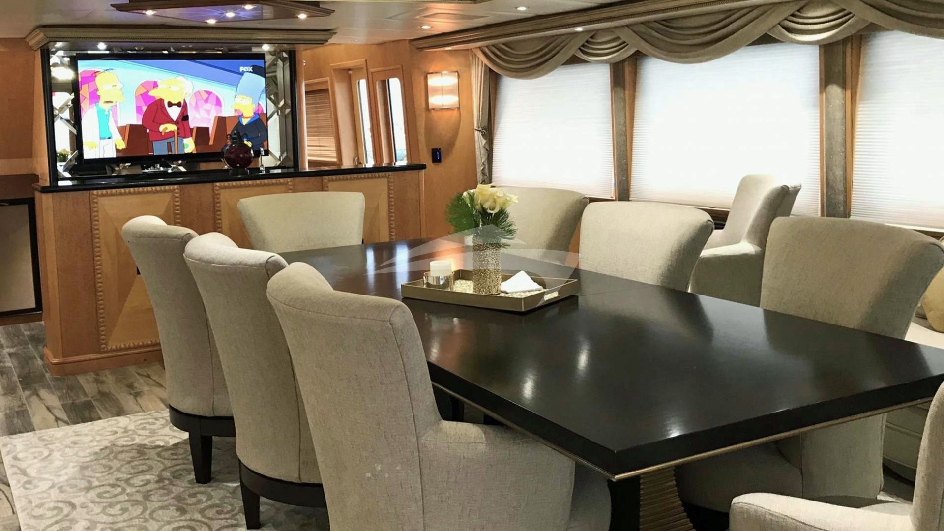 DENISE ROSE, formerly Lady Sharon Gale, is a highly customized 112′ Broward superyacht. Indulge in a yacht that offers classic styling, elegant interiors, an energetic crew and gourmet chef at a remarkable rate. This luxurious charter yacht offers unusually large spaces and lavish features. Imagine relaxing with a signature cocktail and panoramic views from the sundeck Jacuzzi. Enjoy the passing shoreline from the fully-equipped bar, or the roomy table surrounded by plush banquette seating.
