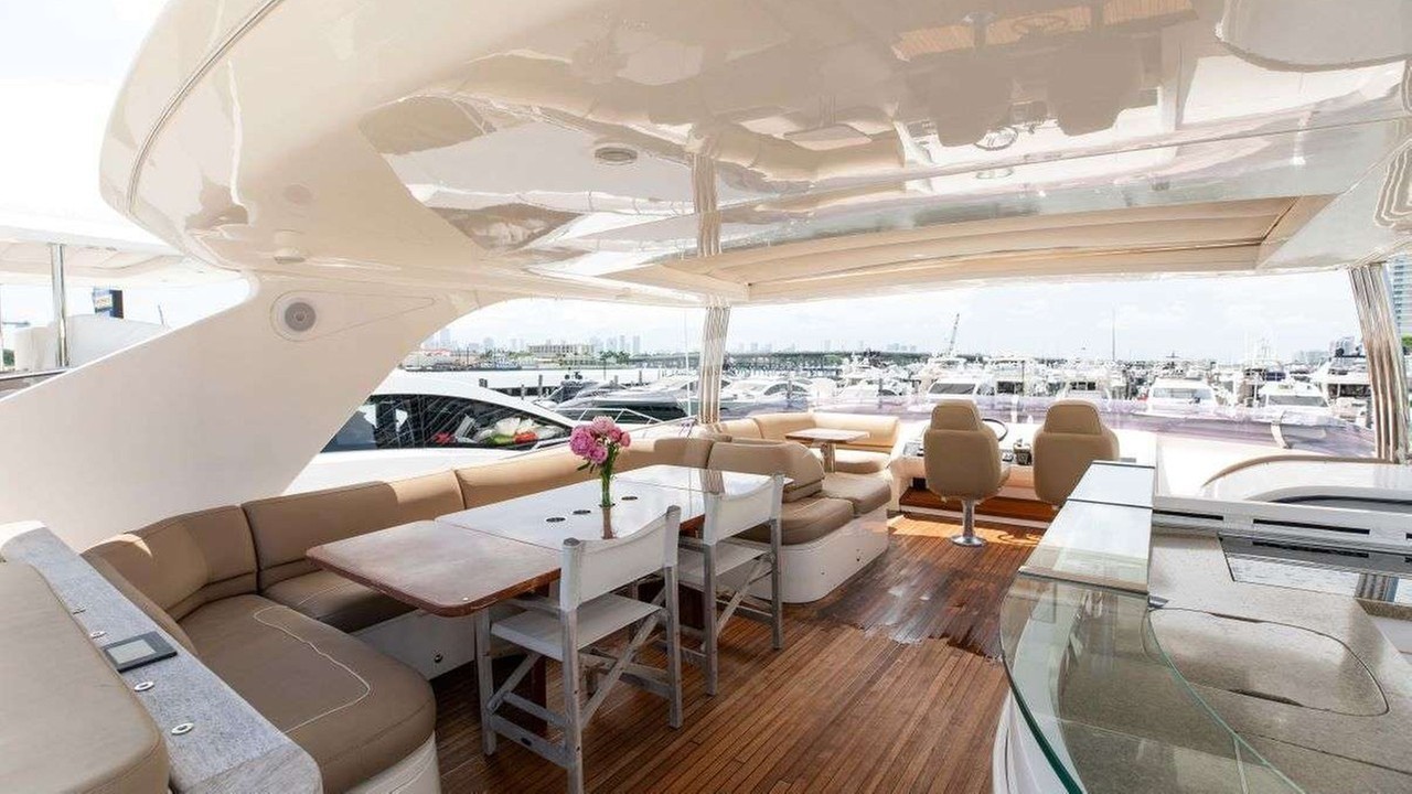 Praying For Overtime Yacht Charter is a 85' superyacht built by Princess in 2012. She sleeps 8 and holds 4 crew and is located in Caribbean, East Coast United States and Caribbean, East Coast United States. She can be booked for a private luxury charter at a rate of $42,000 per week. Please check with your Denison Charter Specialist for more info.