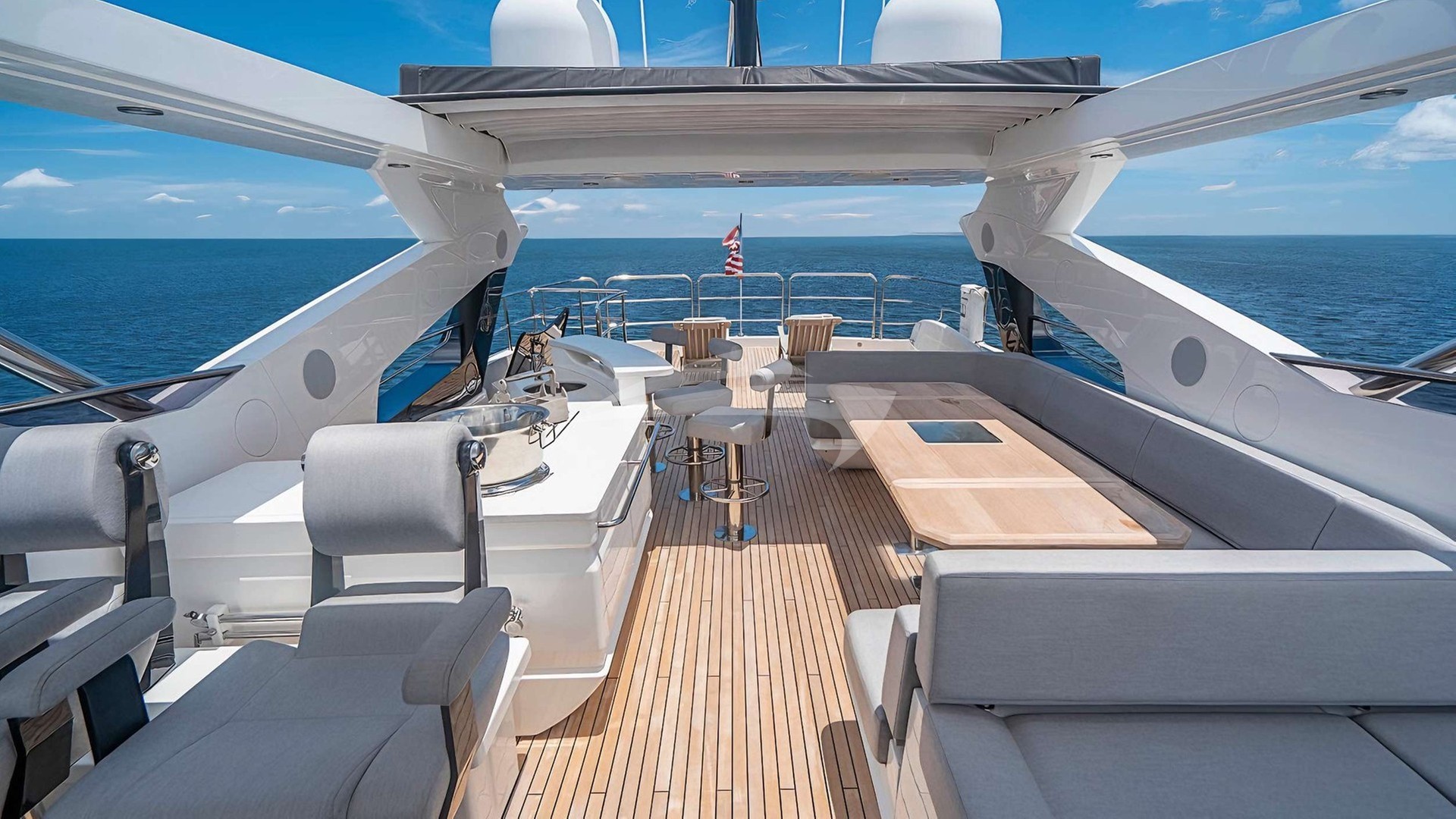 Quantum Yacht Charter is a 91' superyacht built by Sunseeker in 2017. She sleeps 10 and holds 4 crew and is located in East Mediterranean and East Mediterranean. She can be booked for a private luxury charter at a rate of $81,519 per week. Please check with your Denison Charter Specialist for more info.