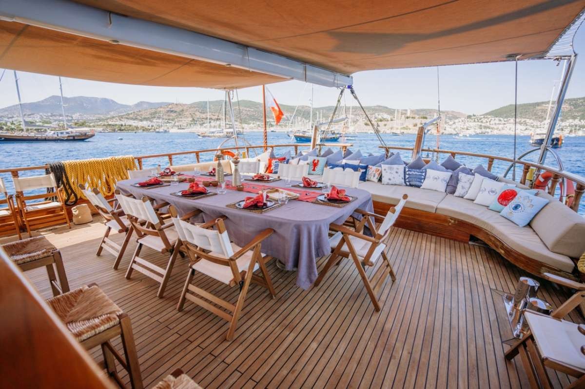 Queen Of Datca Yacht Charter is a 118' superyacht built by Custom Gulet-Motor Sailor in 2009. She sleeps 10 and holds 7 crew and is located in Greece, Turkey, Croatia and Greece, Turkey, Croatia. She can be booked for a private luxury charter at a rate of €27,500 per week. Please check with your Denison Charter Specialist for more info.