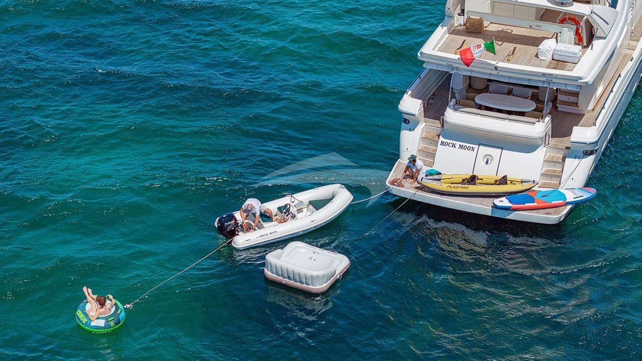 Rock Moon Yacht Charter is a 72' superyacht built by Posillipo in 2004. She sleeps 8 and holds 3 crew and is located in West Mediterranean and West Mediterranean. She can be booked for a private luxury charter at a rate of $33,782 per week. Please check with your Denison Charter Specialist for more info.