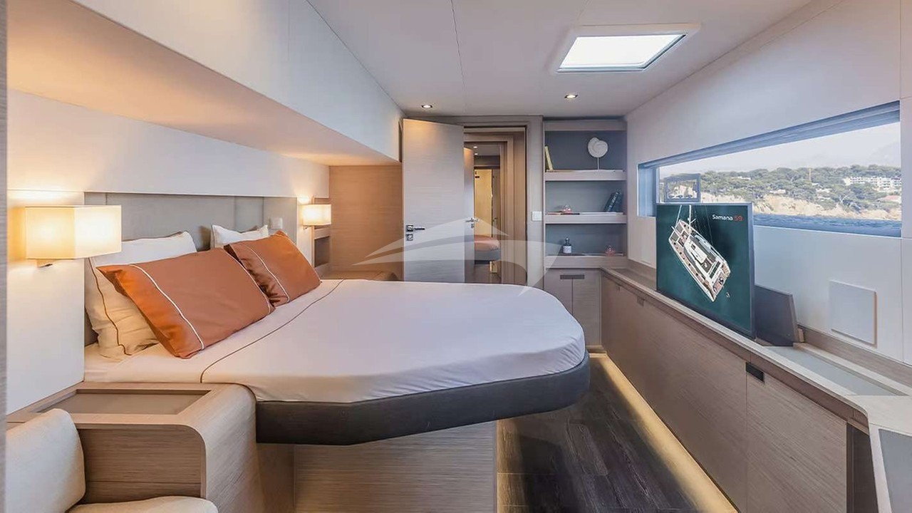 Samana 59 Yacht Charter is a 59' superyacht built by Fountaine Pajot in 2025. She sleeps 10 and holds 3 crew and is located in Caribbean and Caribbean. She can be booked for a private luxury charter at a rate of $41,294 per week. Please check with your Denison Charter Specialist for more info.