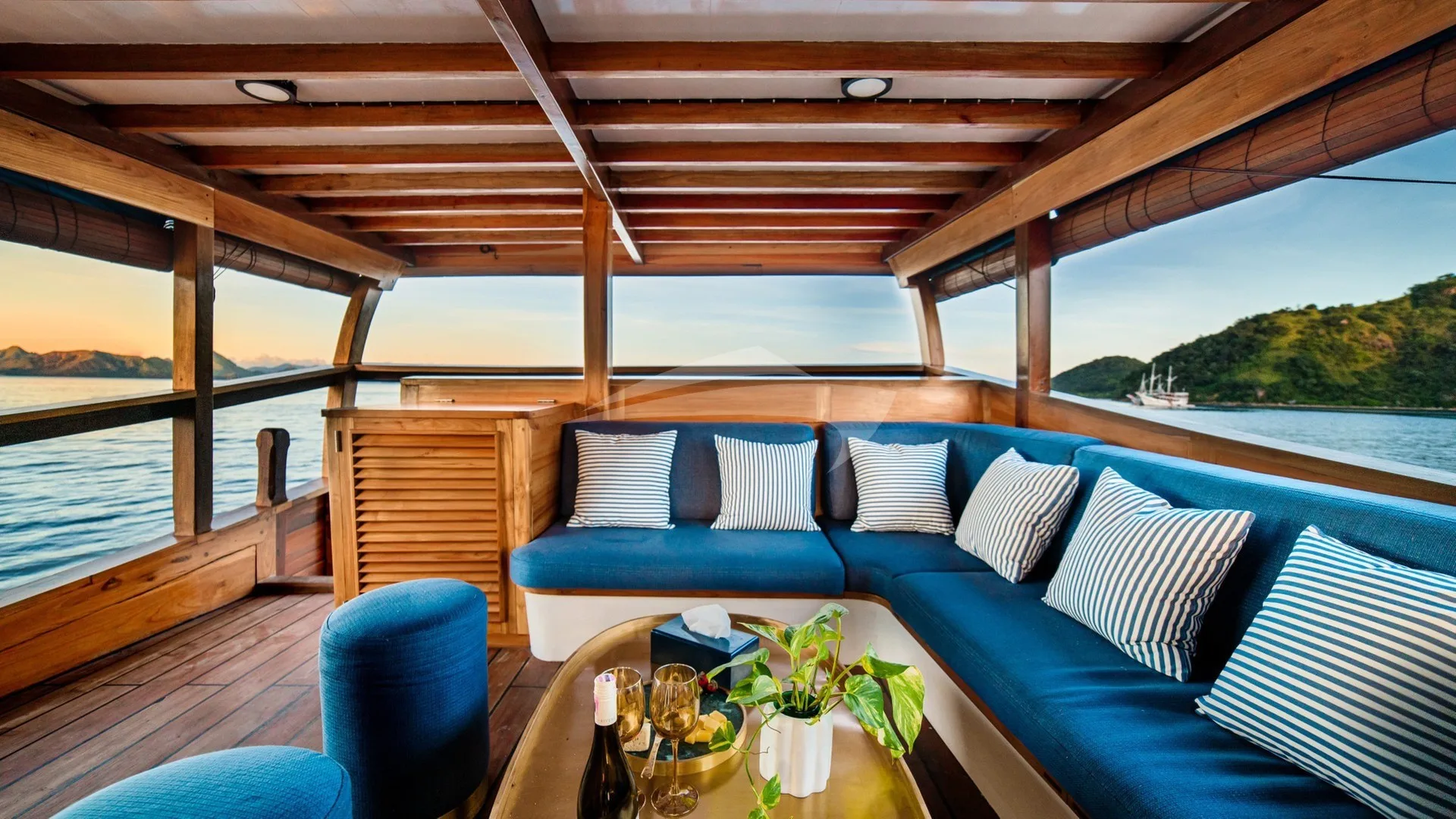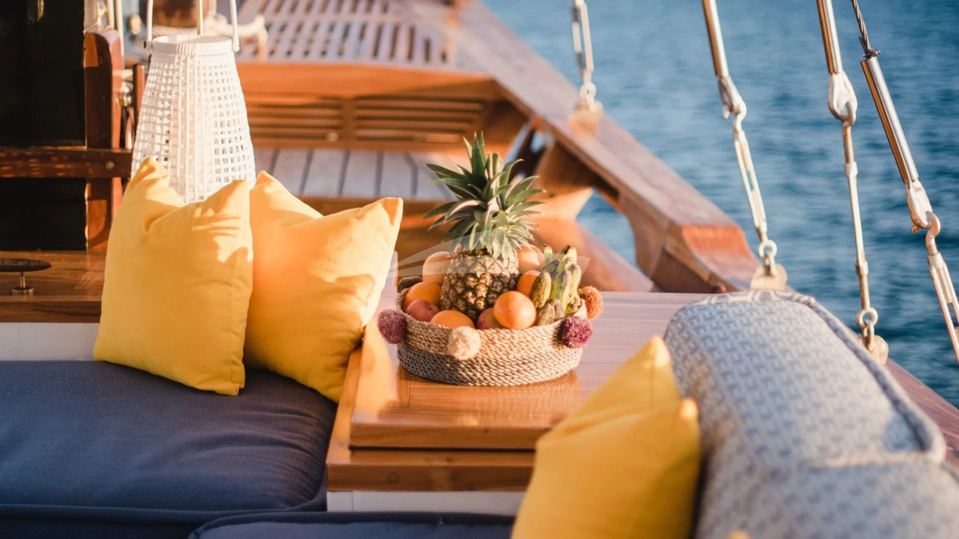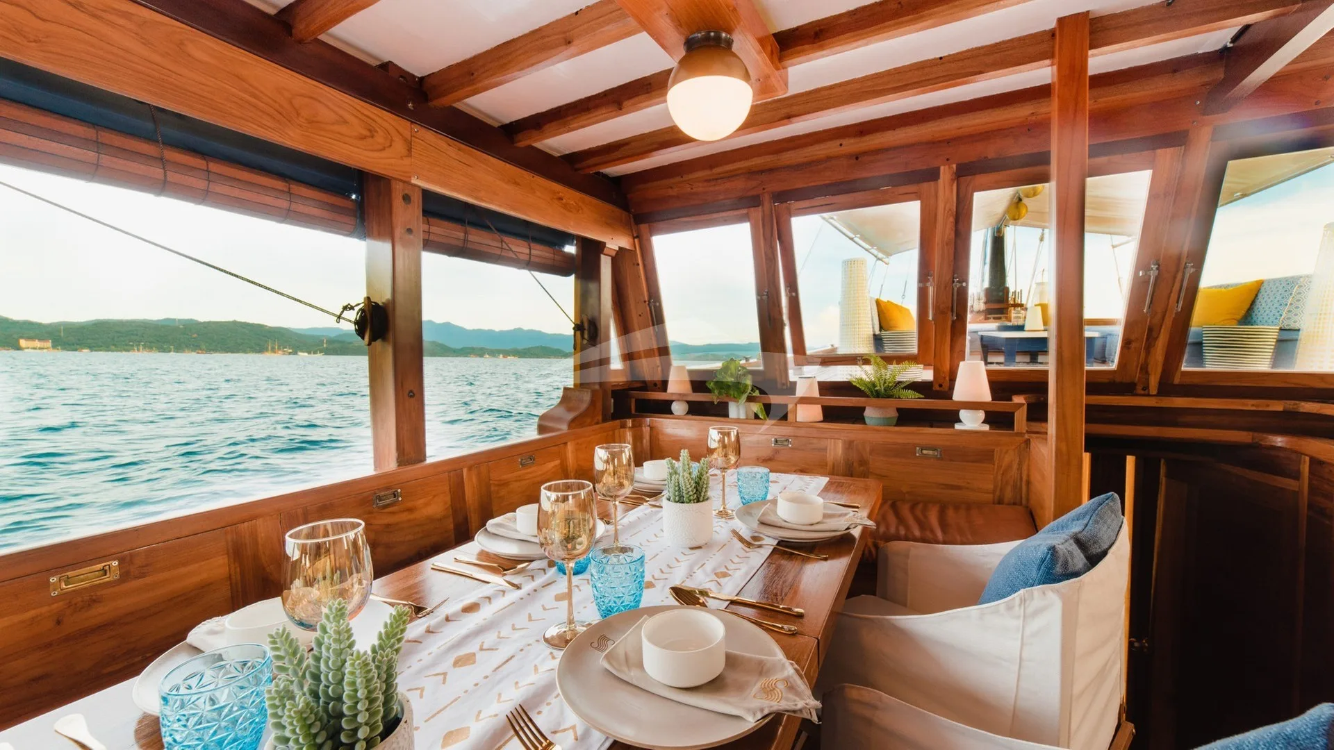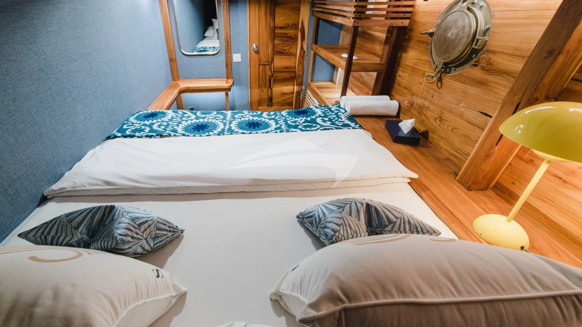 Samara II is designed to host up to 10 guests in 4 cozy cabins. Two cabins feature comfortable double beds, while the other two each have a double bed with an additional bunk bed, making them ideal for families or small groups. All cabins share two bathrooms, ensuring a relaxed and convenient stay on board.