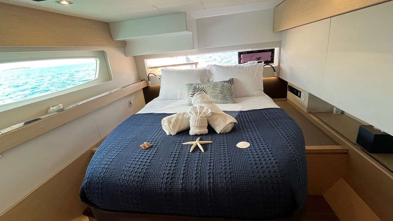 Sandy Cinco Yacht Charter is a 58' superyacht built by Fountaine Pajot in 2016. She sleeps 8 and holds 2 crew and is located in Caribbean and Caribbean. She can be booked for a private luxury charter at a rate of $25,500 per week. Please check with your Denison Charter Specialist for more info.
