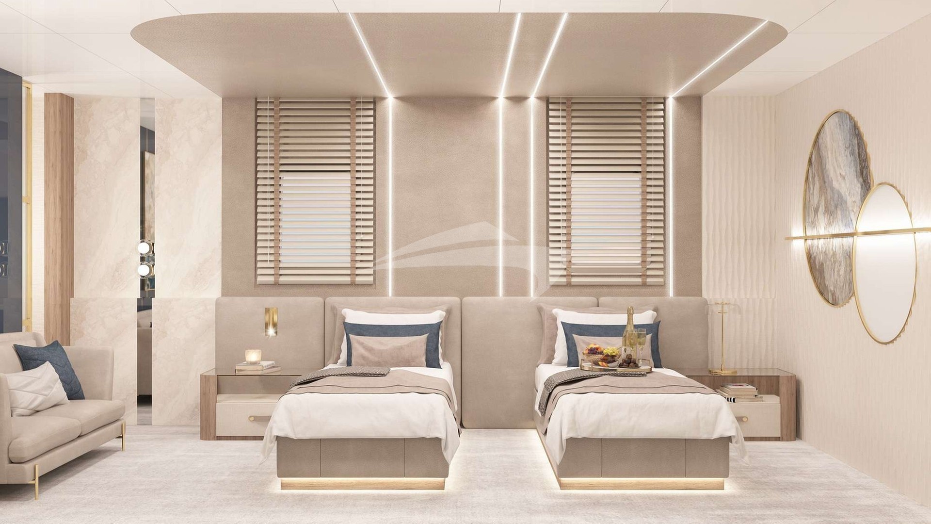 SCORPIOS boasts an impressive array of accommodations, featuring 10 lavishly appointed suites. The primary suite, complete with a king-size bed and en-suite facilities, sets the standard for luxury. Five additional king-size cabins and four twin cabins ensure that every guest enjoys the utmost in comfort and privacy during their voyage.
