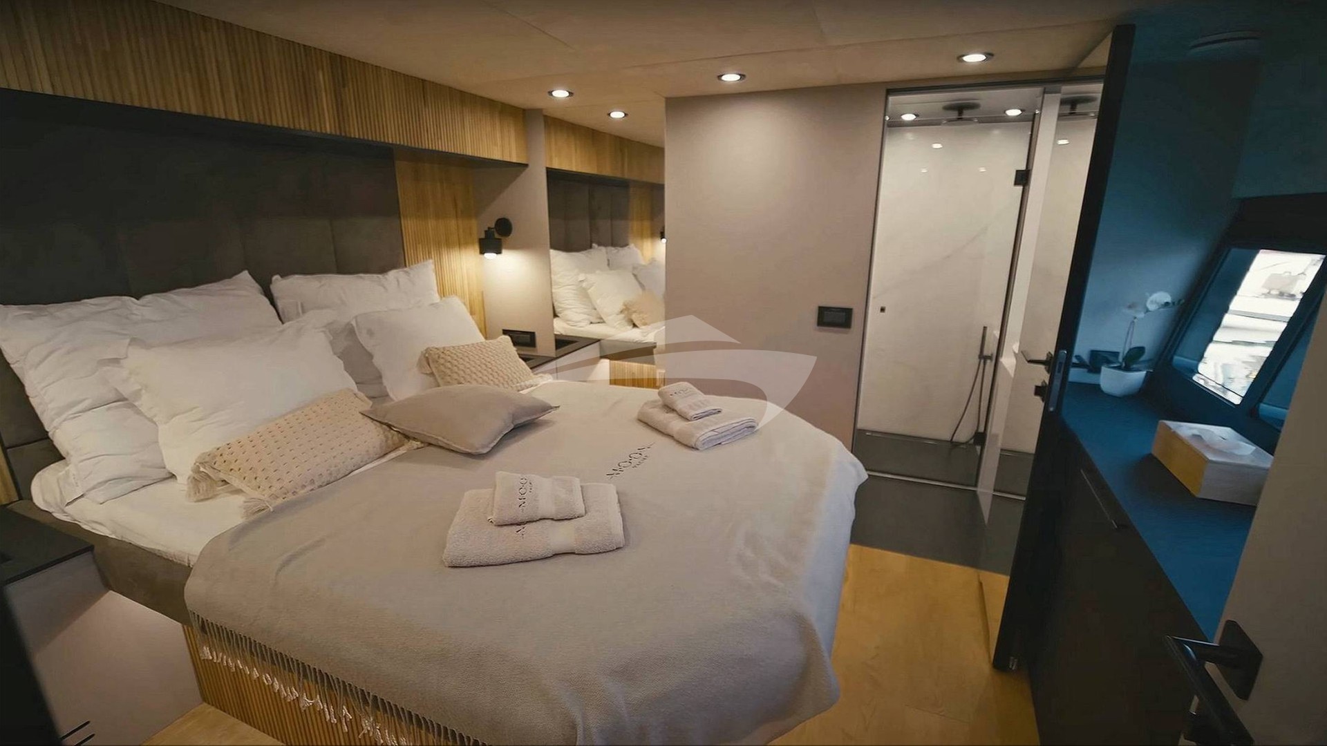 Introducing an incredible 2024 Moon Yacht 60 Catamaran; a luxurious sailing cruiser with an unparalleled level of comfort. This 18.32-metre catamaran offers a spacious 5-Cabin layout, with a master and 4 guest cabins all fully air-conditioned with en-suite facilities. The generously sized saloon includes a sofa and dining table, while there is direct access to the front and aft decks and a large flybridge with seating, bar and dining all adds to the vessel's comfort and performance. Fully customisable to match your individual style and tastes, this superior quality Moon Yacht catamaran is the perfect choice for long-term living, a holiday home or chartering to guests.