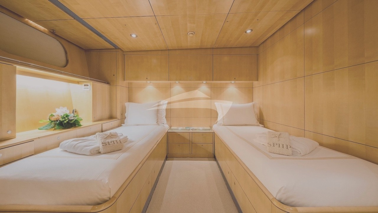 1 x twin cabin, on starboard side aft, with 2 single bunkbeds and is en suite with a shower. Suitable for children or a nanny, not recommended for adult guests.