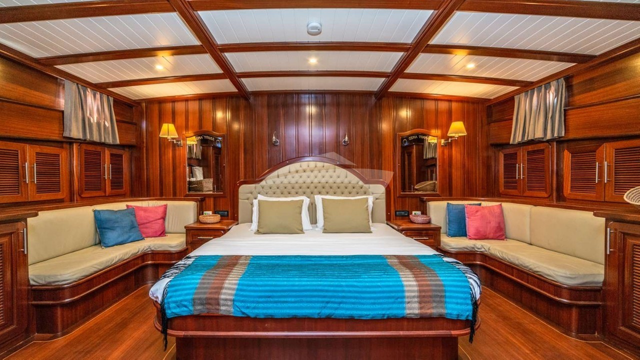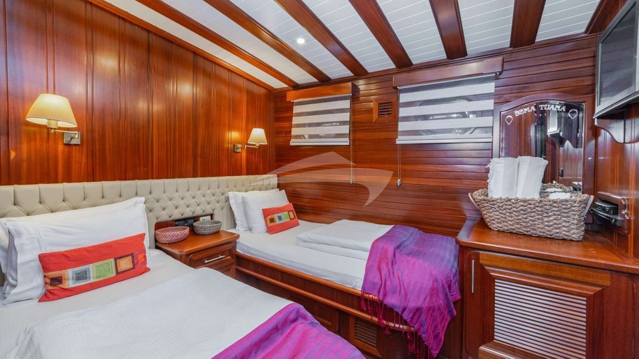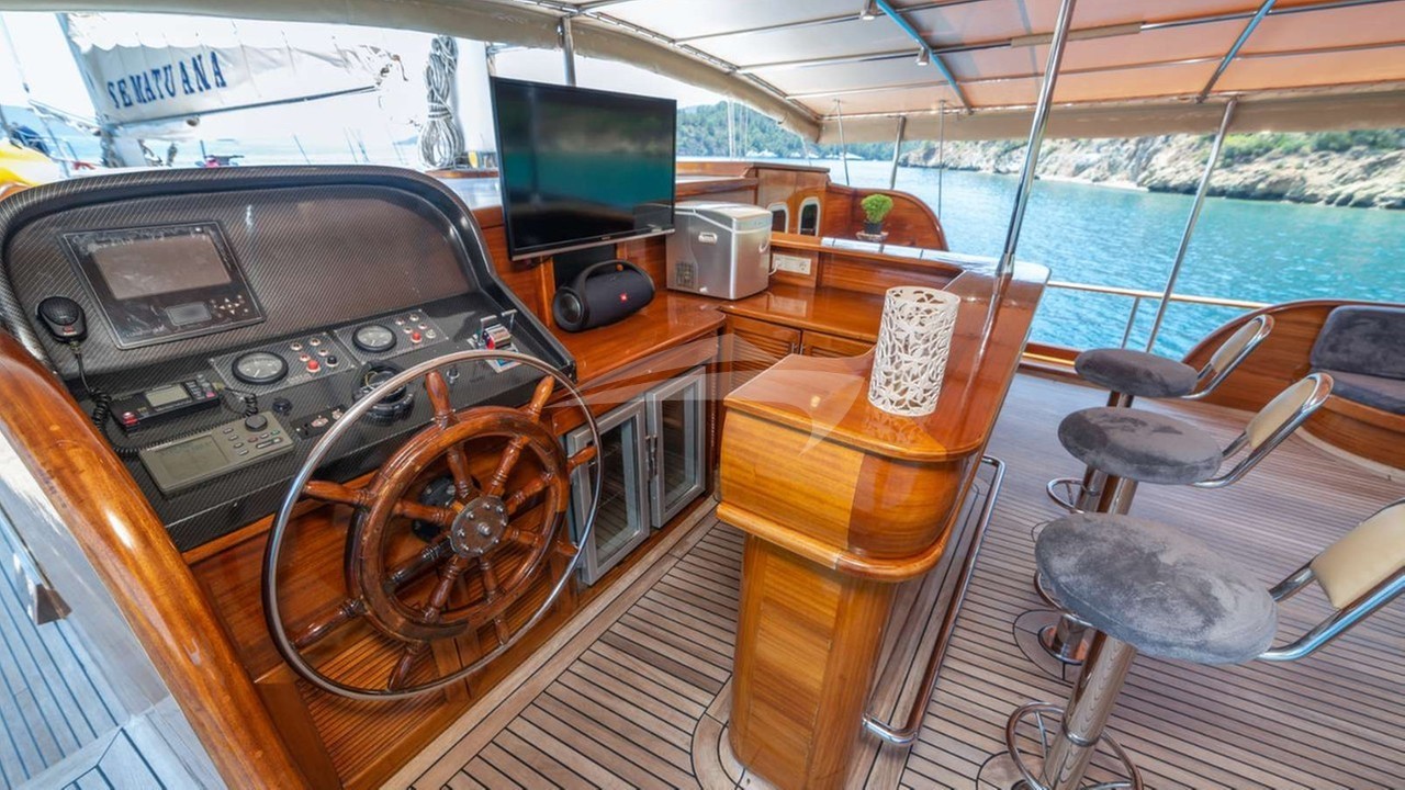 Sema Tuana Yacht Charter is a 105' superyacht built by Custom in 2008. She sleeps 12 and holds 6 crew and is located in East Mediterranean and East Mediterranean. She can be booked for a private luxury charter at a rate of $26,494 per week. Please check with your Denison Charter Specialist for more info.