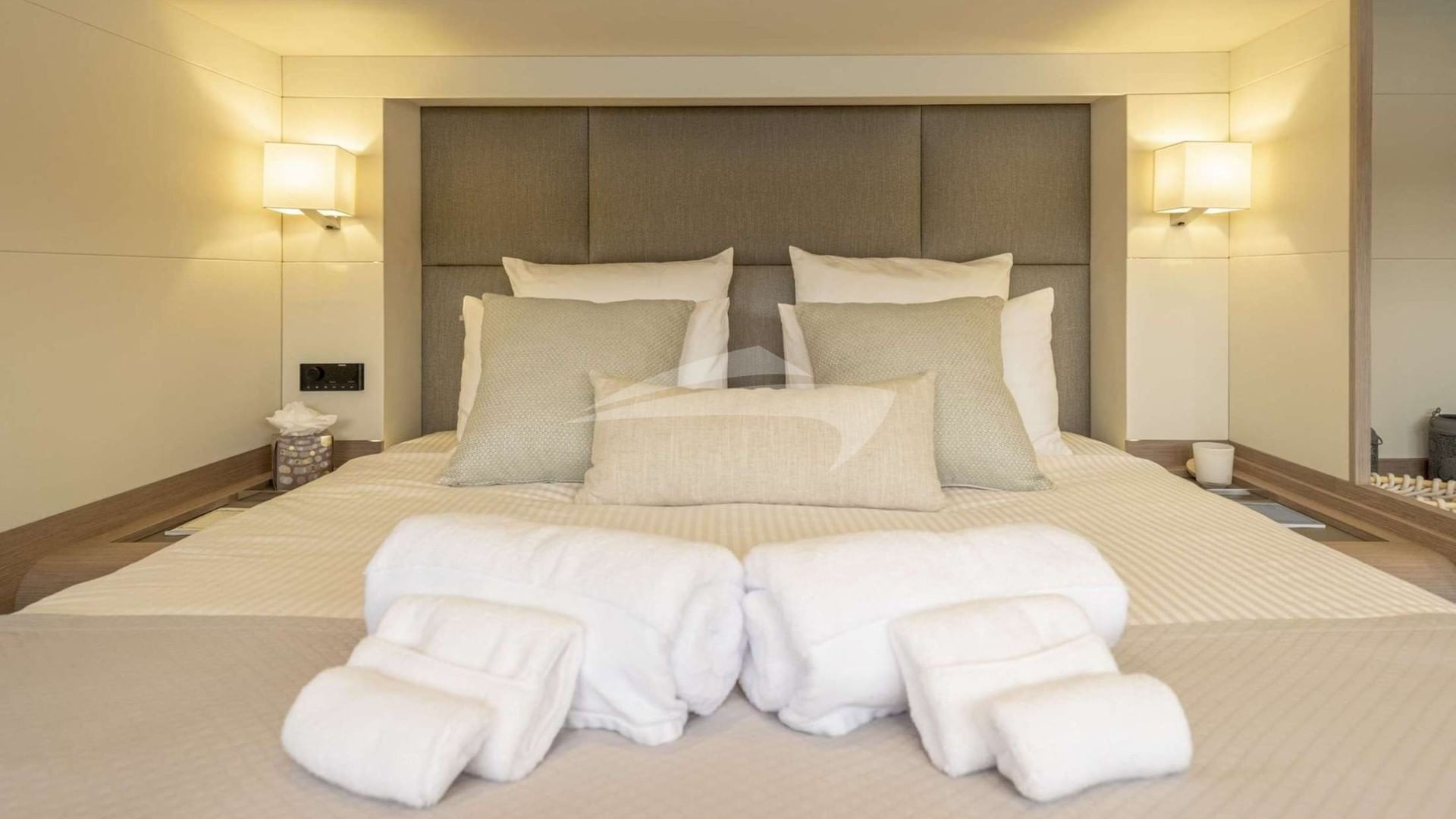 For enterntainment, SEMPER FIDELIS presents a range of activities, from sunbathing nets under the warm Mediterranean climate to a heated jacuzzi, perfect for enjoying the picturesque views. Equipment on board will also allow you to practice water skiing and wakeboarding, or even trips to beautiful beaches along the coast. Evenings on this catamaran can be spent in front of the overhead projector or in the comfort of lavish cabins, including a studio with a sea view.
