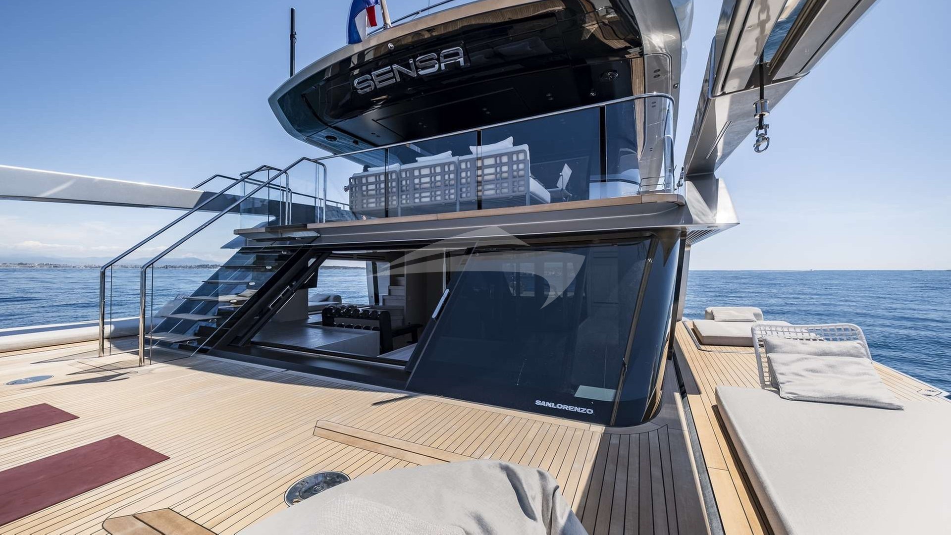 Sensa Yacht Charter is a 112' superyacht built by Sanlorenzo in 2025. She sleeps 9 and holds 5 crew and is located in West Mediterranean and West Mediterranean. She can be booked for a private luxury charter at a rate of $145,569 per week. Please check with your Denison Charter Specialist for more info.