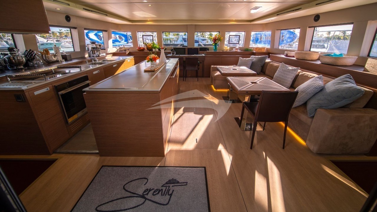 Serenity Yacht Charter is a 63' superyacht built by Lagoon in 2019. She sleeps 8 and holds 3 crew and is located in Caribbean and Caribbean. She can be booked for a private luxury charter at a rate of $39,000 per week. Please check with your Denison Charter Specialist for more info.