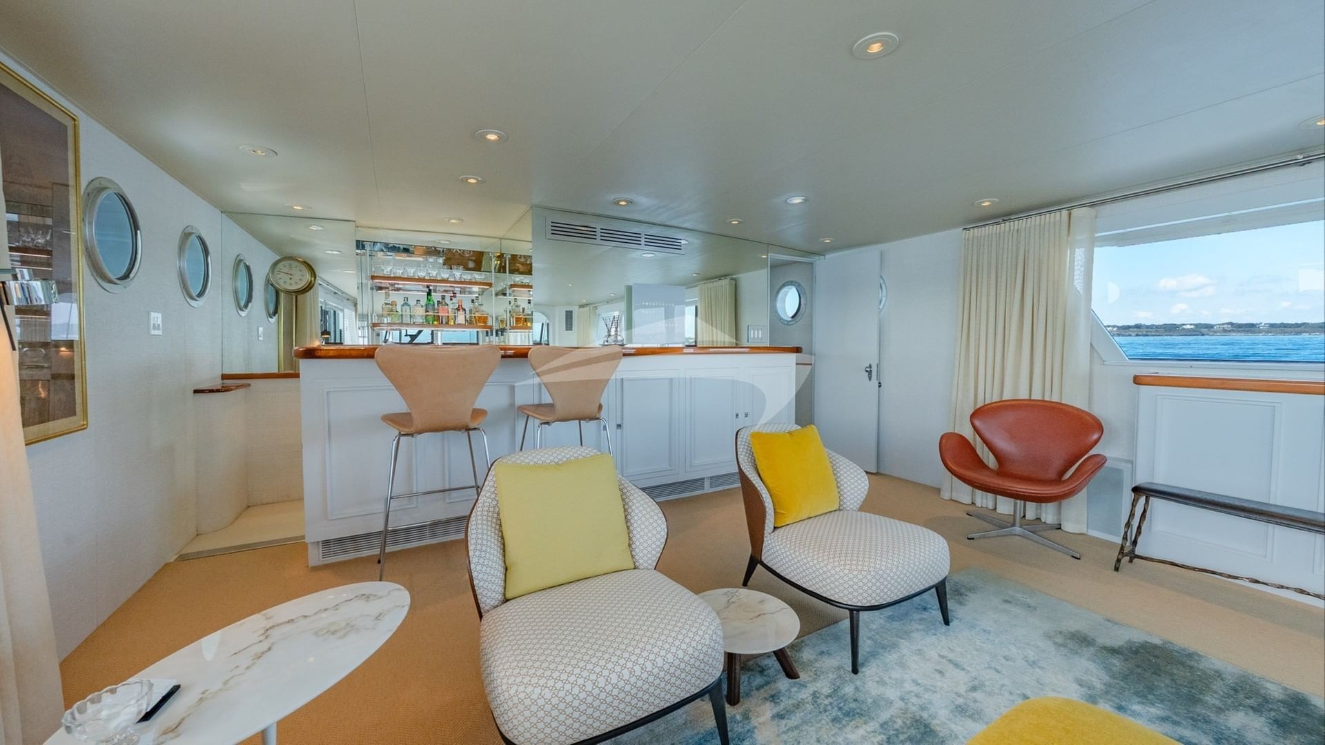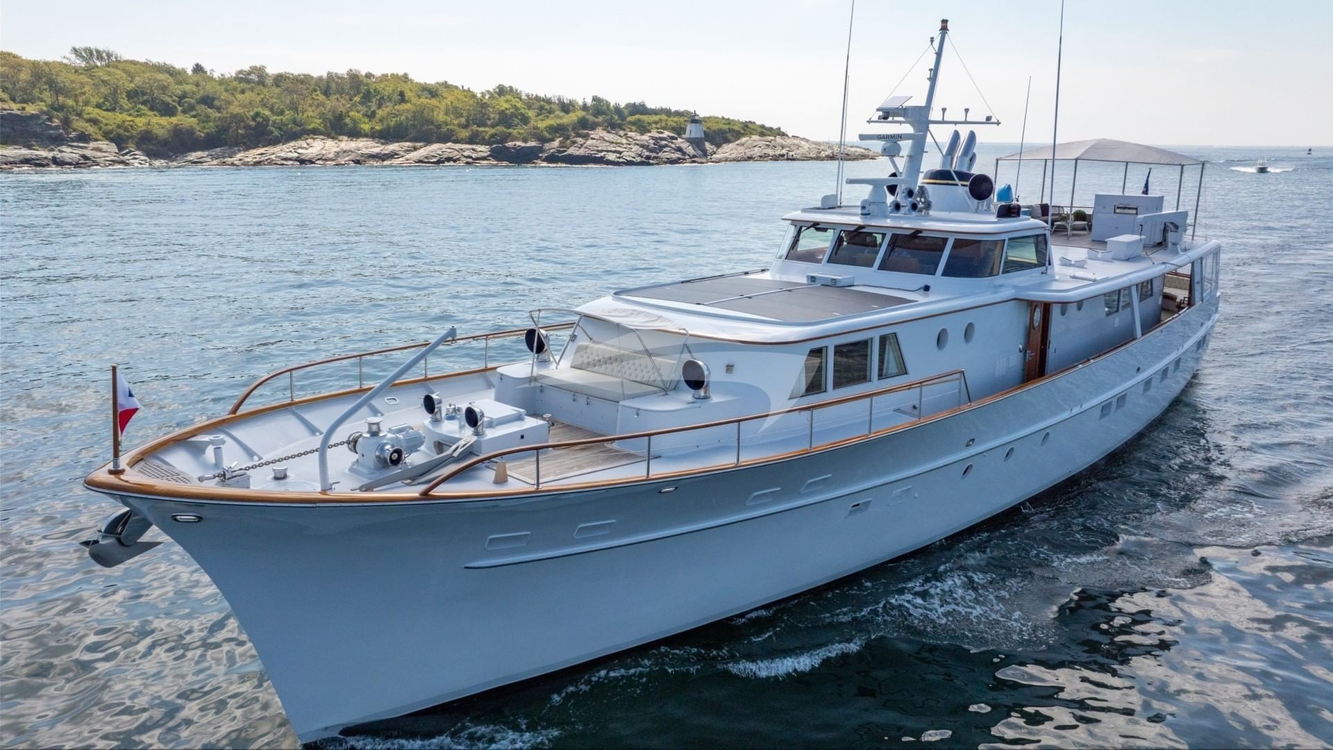 Built by Burger Yachts in 1966, SOVEREIGN is a completely restored and updated classic motor yacht with all the amenities of a modern yacht. SOVEREIGN has been continuously well maintained & upgraded with her most recent refit in 2019. With an interior described as "Palm Beach chic" she is outfitted with a beautiful collection of mid-century modern antique furnishings - a collaboration between Ellen Kavanaugh Interiors and Dana Andrews at American custom cabinetry.