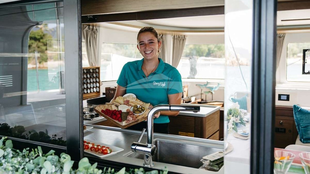 Starry Night Yacht Charter is a 45' superyacht built by Lagoon in 2022. She sleeps 6 and holds 2 crew and is located in Caribbean and Caribbean. She can be booked for a private luxury charter at a rate of $24,000 per week. Please check with your Denison Charter Specialist for more info.