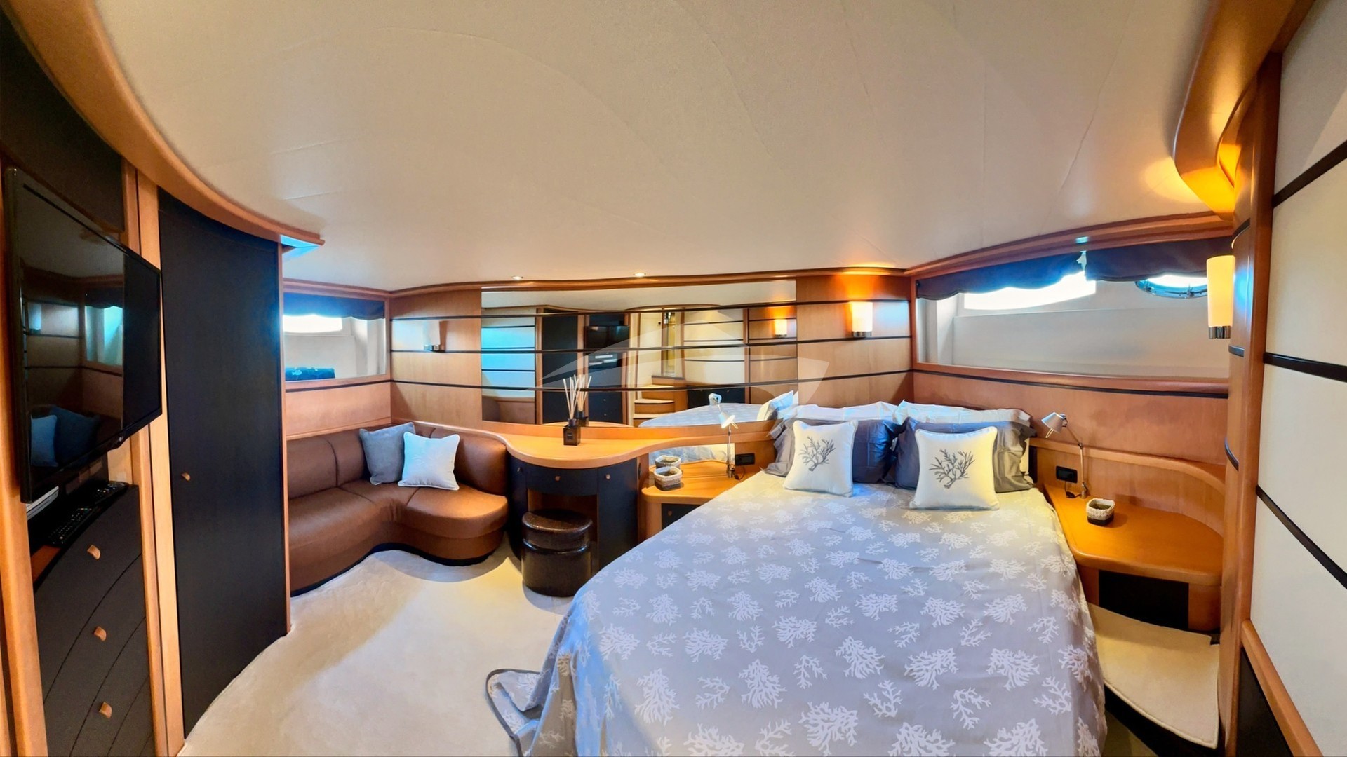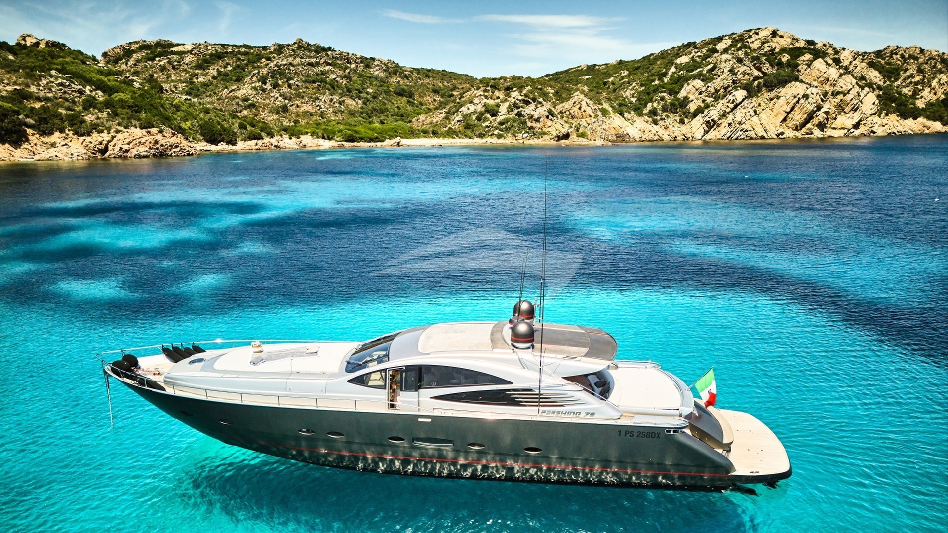 Stinger Yacht Charter is a 78' superyacht built by Pershing in 2004. She sleeps 8 and holds 3 crew and is located in West Mediterranean and West Mediterranean. She can be booked for a private luxury charter at a rate of $41,877 per week. Please check with your Denison Charter Specialist for more info.