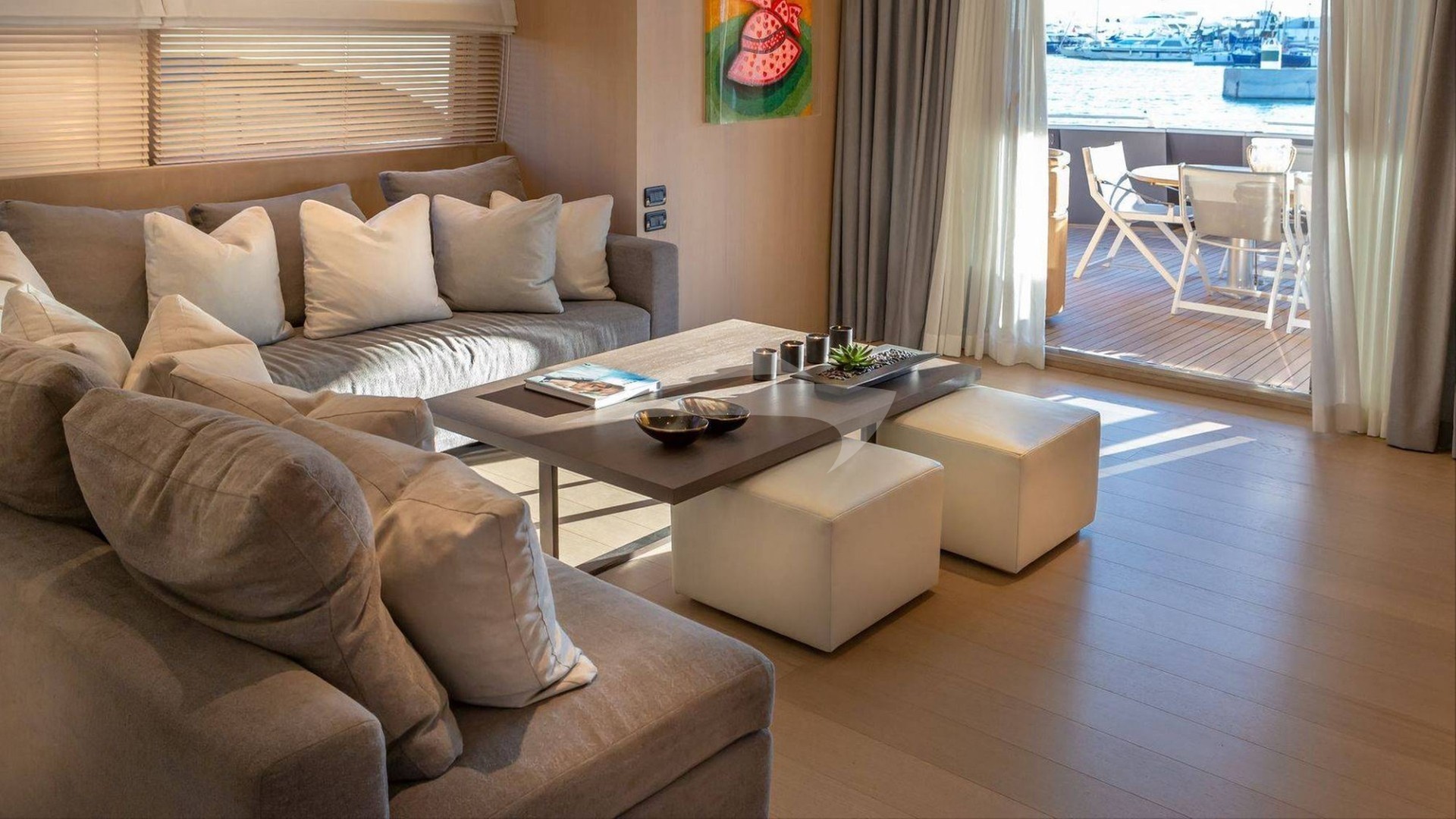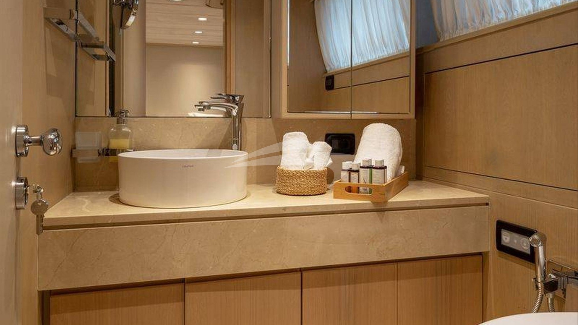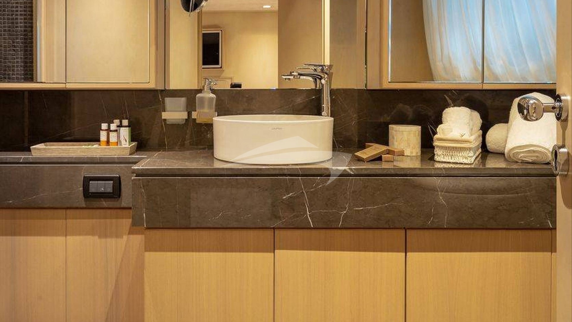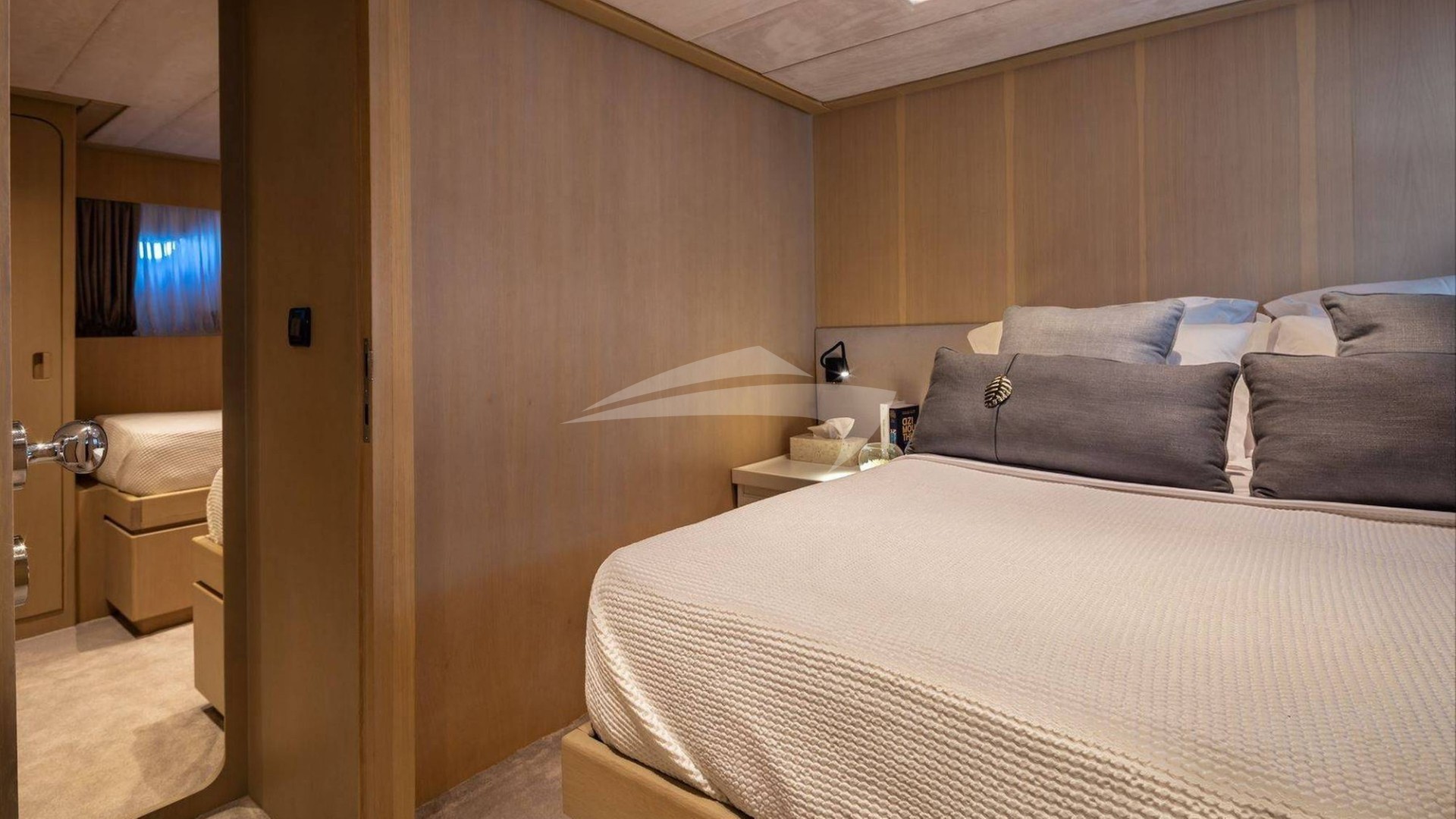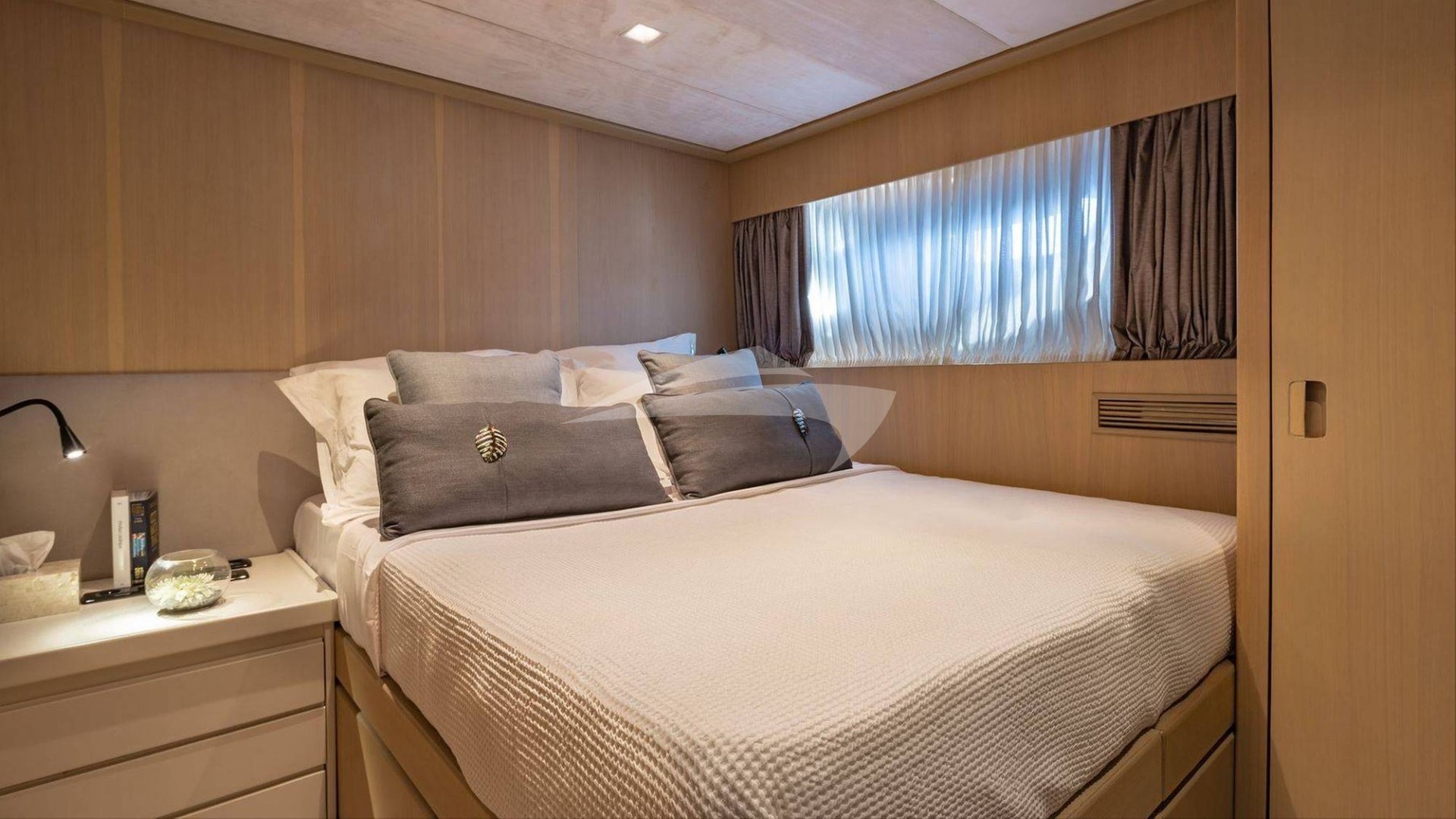 12 guests in 1 Master Suite, 1 VIP on the Main Deck convertible into a Playroom