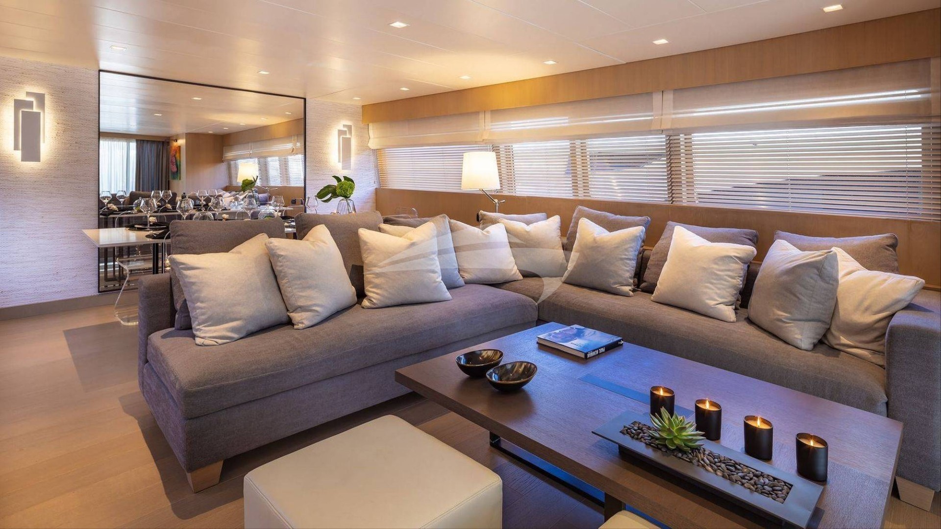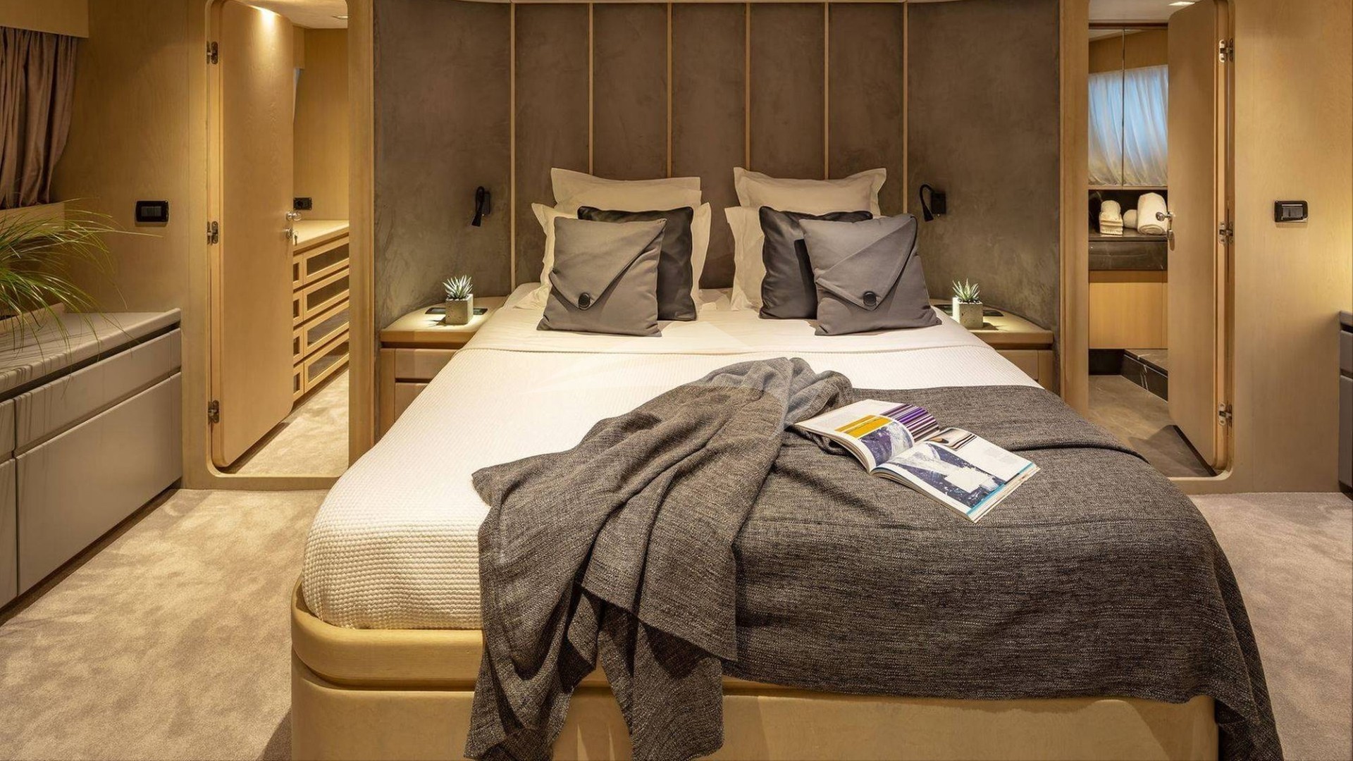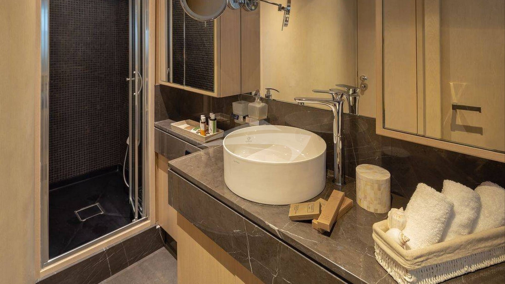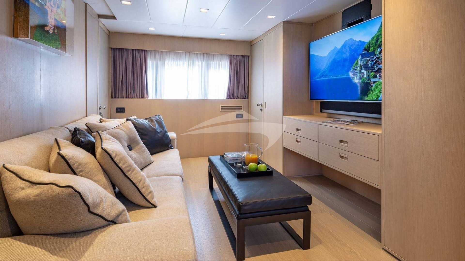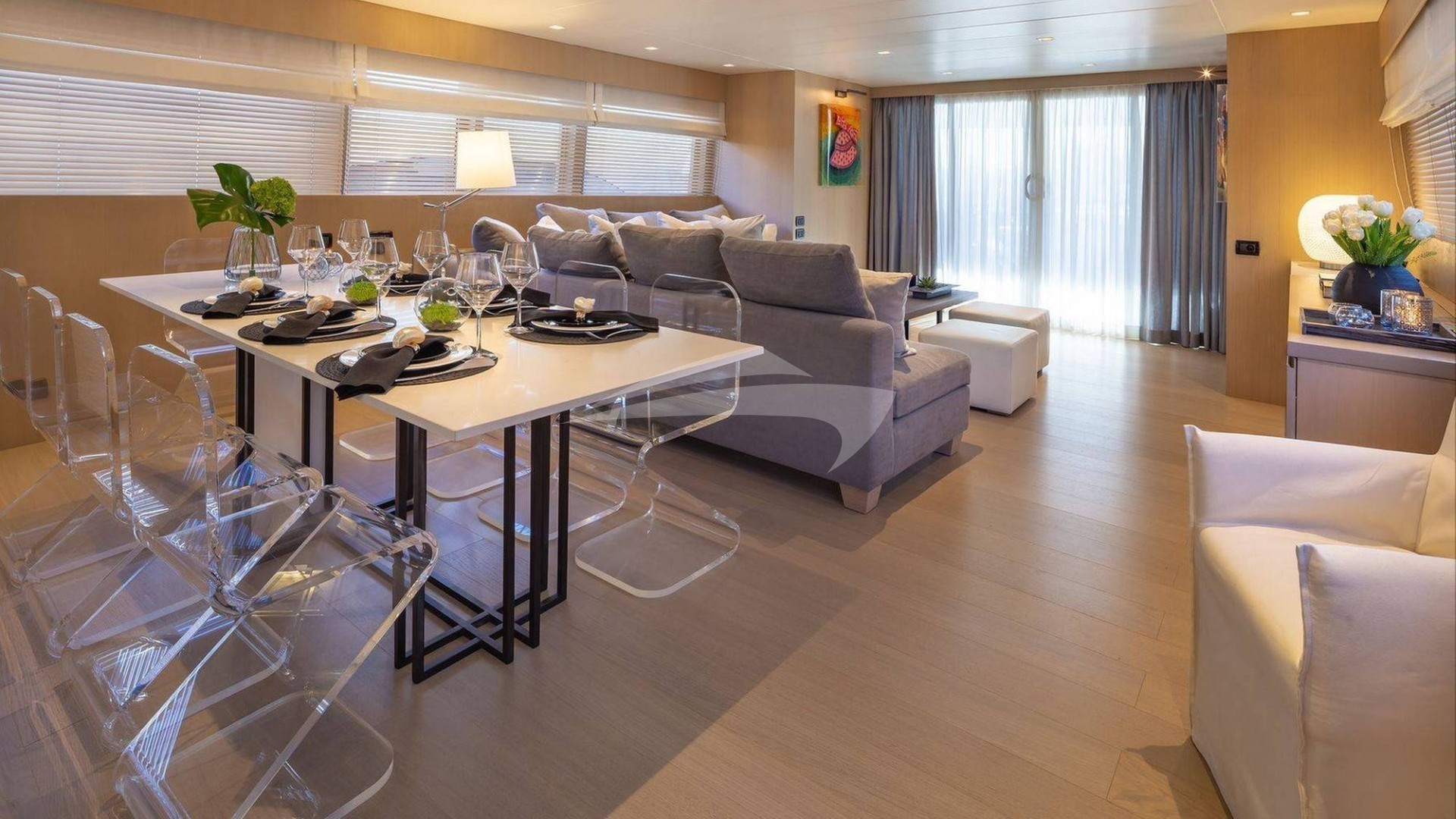 12 guests in 1 Master Suite, 1 VIP on the Main Deck convertible into a Playroom