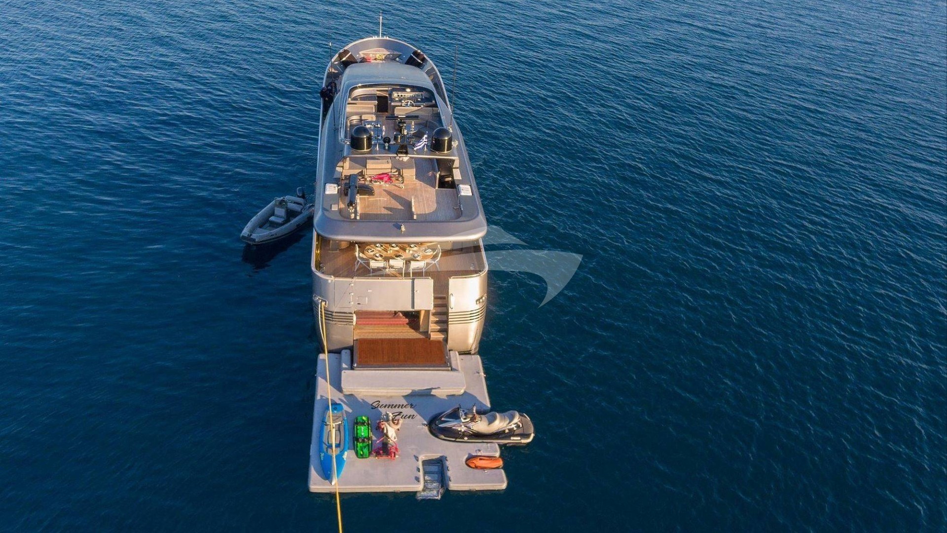 Summer Fun is a stunning 30.80 metre motor yacht built in 2001 by Admiral Yachts yet fully refitted in 2021. Her interior is sleek and modern with a neutral colour scheme running throughout the vessel, giving a calming and elegant vibe. She sleeps up to 12 guests in 6 finely decorated rooms, including one Master Suite, 1 VIP on the Main Deck that converts into a Playroom, 4 Twin cabins, 2 of which convert into Double all with en suite facilities and a/c. She is also capable of carrying up to 7 crew members on board to ensure a relaxed luxury yacht experience. Summer Fun's timeless styling along with her impressive leisure and entertainment facilities such as a wide collection of water toys make her the ideal charter yacht for socialising and entertaining with family and friends.