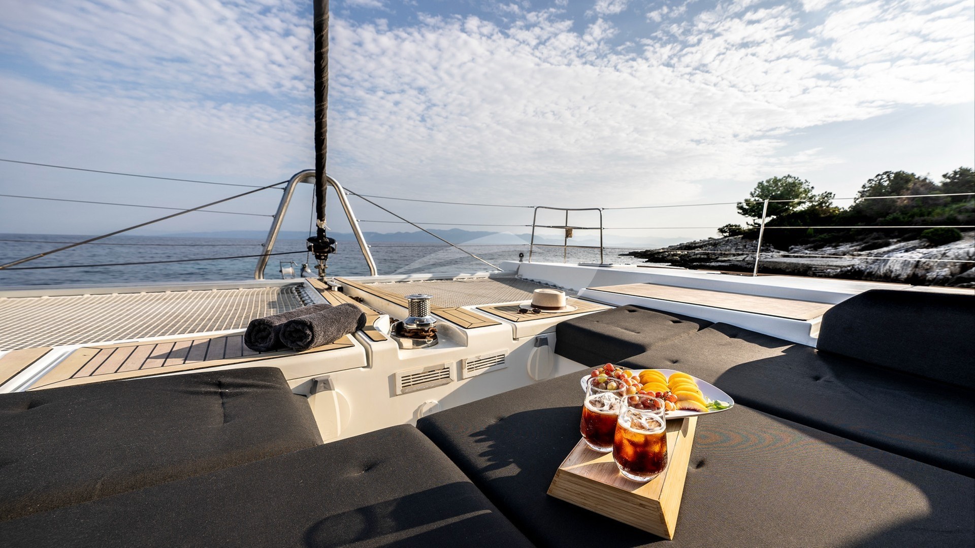 Tamiro Yacht Charter is a 51' superyacht built by Lagoon in 2019. She sleeps 8 and holds 3 crew and is located in East Mediterranean and East Mediterranean. She can be booked for a private luxury charter at a rate of $16,309 per week. Please check with your Denison Charter Specialist for more info.