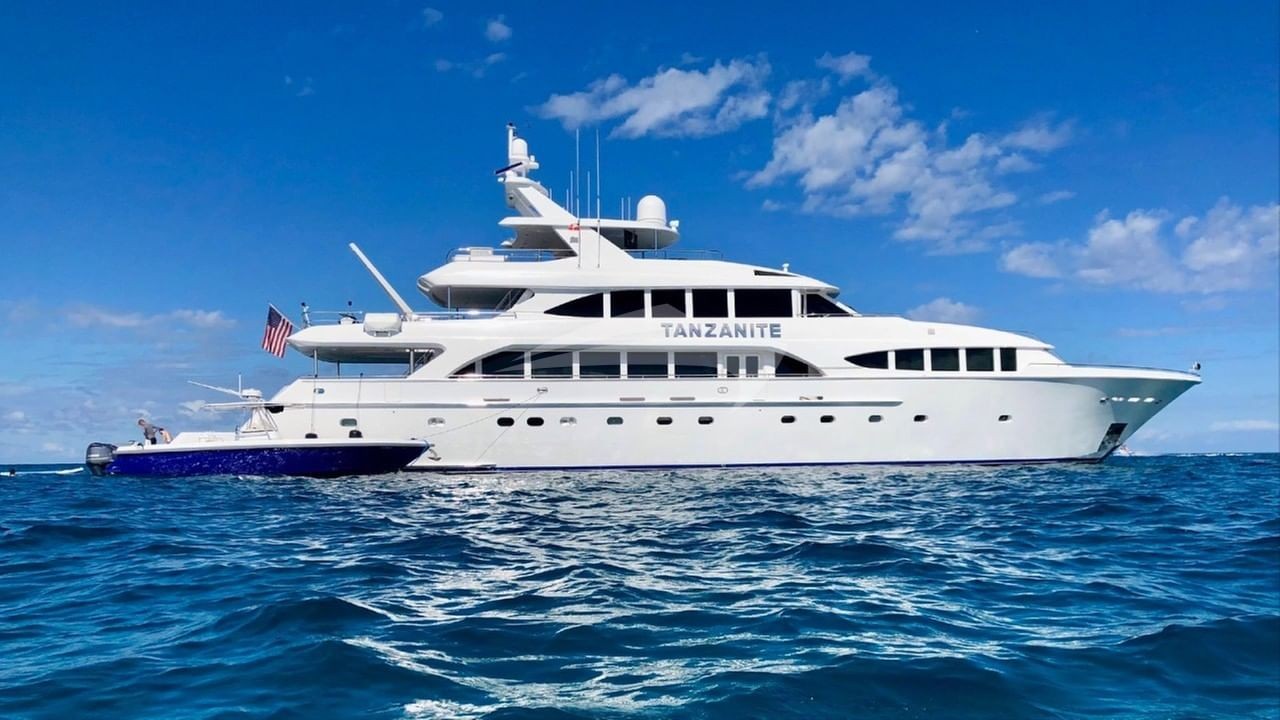 Tanzanite Yacht Charter is a 145' superyacht built by Westship in 2004. She sleeps 10 and holds 8 crew and is located in Caribbean, East Coast United States and Caribbean, East Coast United States. She can be booked for a private luxury charter at a rate of $160,000 per week. Please check with your Denison Charter Specialist for more info.