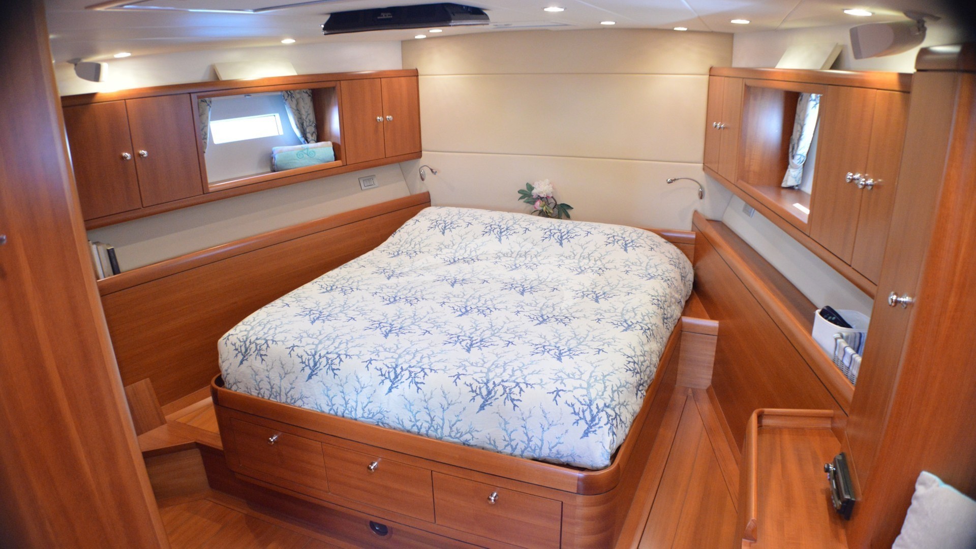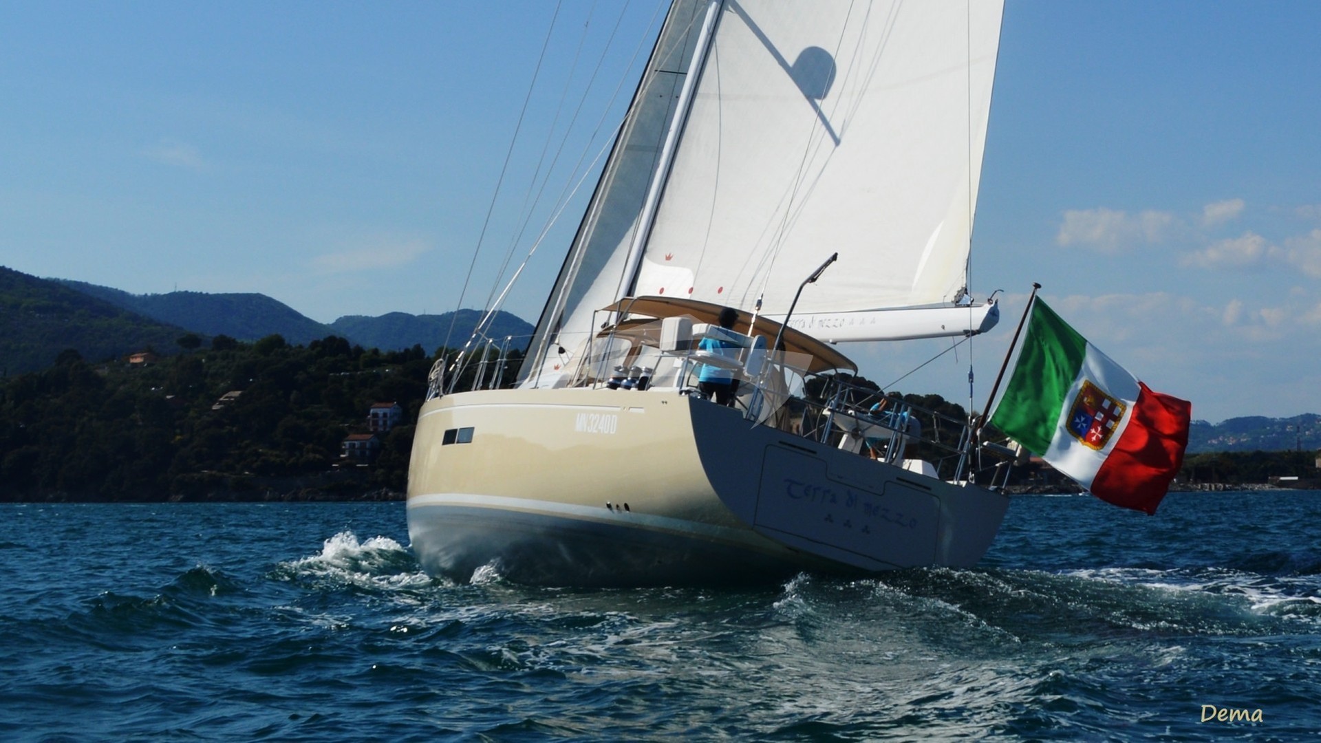 “Terra di mezzo III” is a custom Solaris 72 DH from the Naval yard Se.Ri.Gi., designed by Doug Peterson. An exclusive yacht of unique luxury, comfort, and of the highest sailing performance in any type of sea. It is equipped with three en-suite cabins of which one master, one double, and one twin. Each cabin comes with air-conditioning and heating, and the bathrooms include shower and electric toilets. The large salon is both elegant and comfortable, ideal to eat in or relax with a drink whilst listening to the Bose sound system. The teak exterior is characterized by a wide sunbathing area in the bow, comfortable table to eat in the cockpit, space in the rear with a ladder for access to the sea. Very professional and experienced crew with excellent interpersonal skills Captained by Edoardo and First Mate Simone.