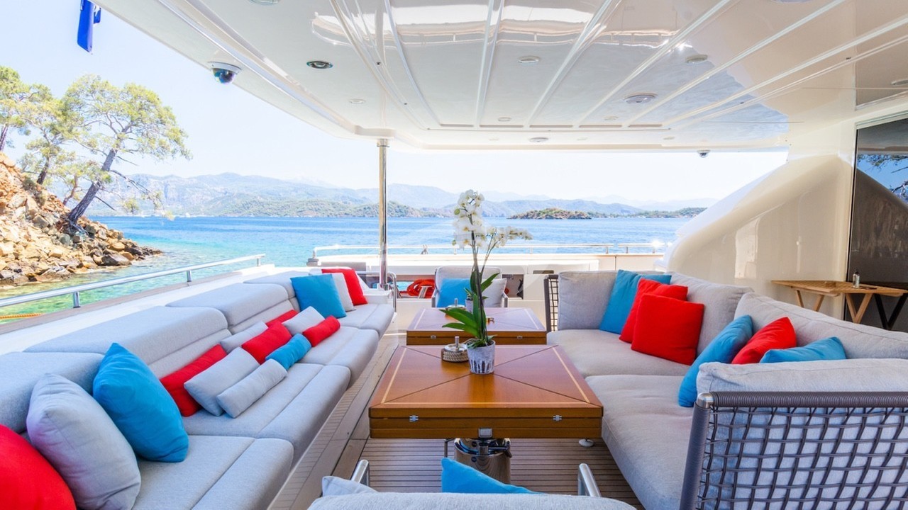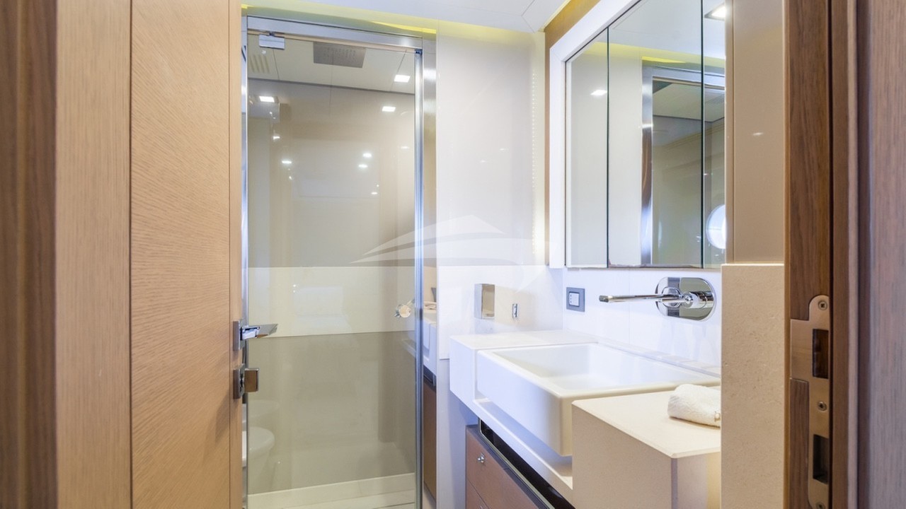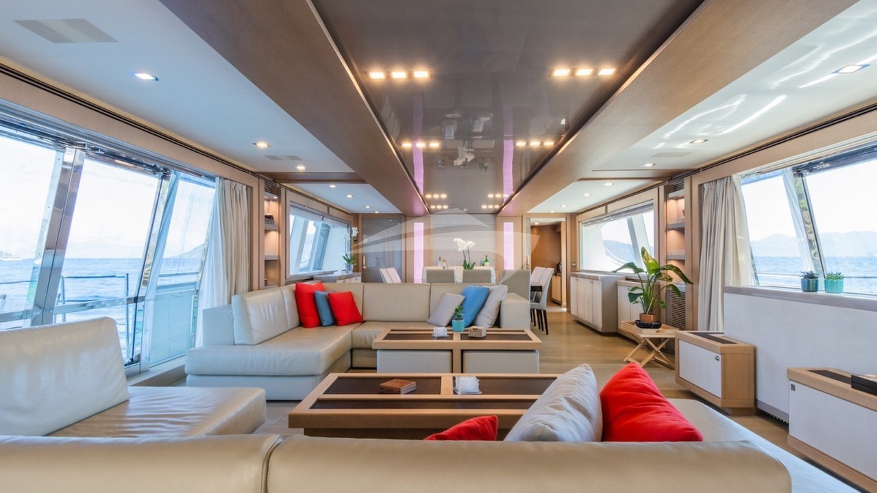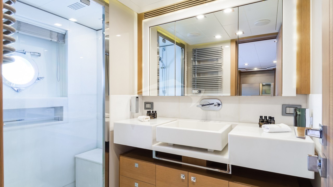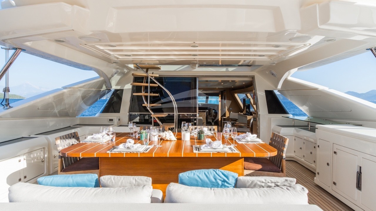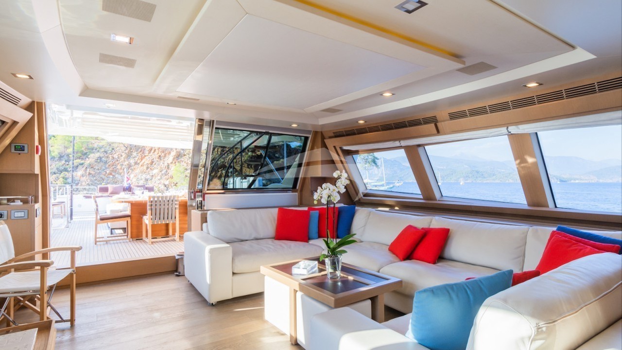 Welcoming 12 guests in 5 staterooms, she boasts a full-beam master on the main deck, with the lower deck offering two double staterooms and two twin staterooms each with a pullman bed, all meticulously maintained with en suites and equipped with the latest technologies and modern amenities. For those opting to spend their time indulging in the sun and sea breeze, guests can choose from multiple areas to reside, from the bimini shaded bow seating, to the aft deck sunloungers, or to the private sundeck for the best seat in the house.