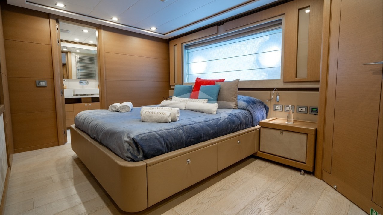 THALYSSA's spacious and luxurious accommodation features five meticulously appointed suites, including a lavish primary suite with a king-size bed and en-suite facilities. The remaining cabins offer a perfect blend of comfort and style, with queen, double, and twin configurations to suit various guest preferences. With a crew of seven dedicated professionals, including an experienced captain, you'll enjoy personalized service and unparalleled attention to detail throughout your journey.