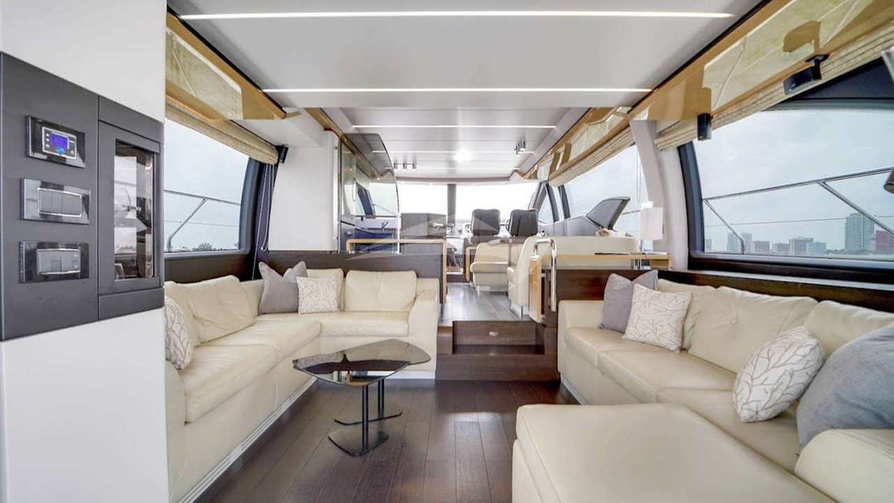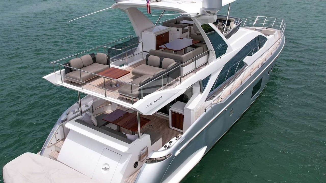 The One Yacht Charter is a 67' superyacht built by Azimut in 2017. She sleeps 8 and holds 2 crew and is located in Caribbean, East Coast United States and Caribbean, East Coast United States. She can be booked for a private luxury charter at a rate of $39,900 per week. Please check with your Denison Charter Specialist for more info.