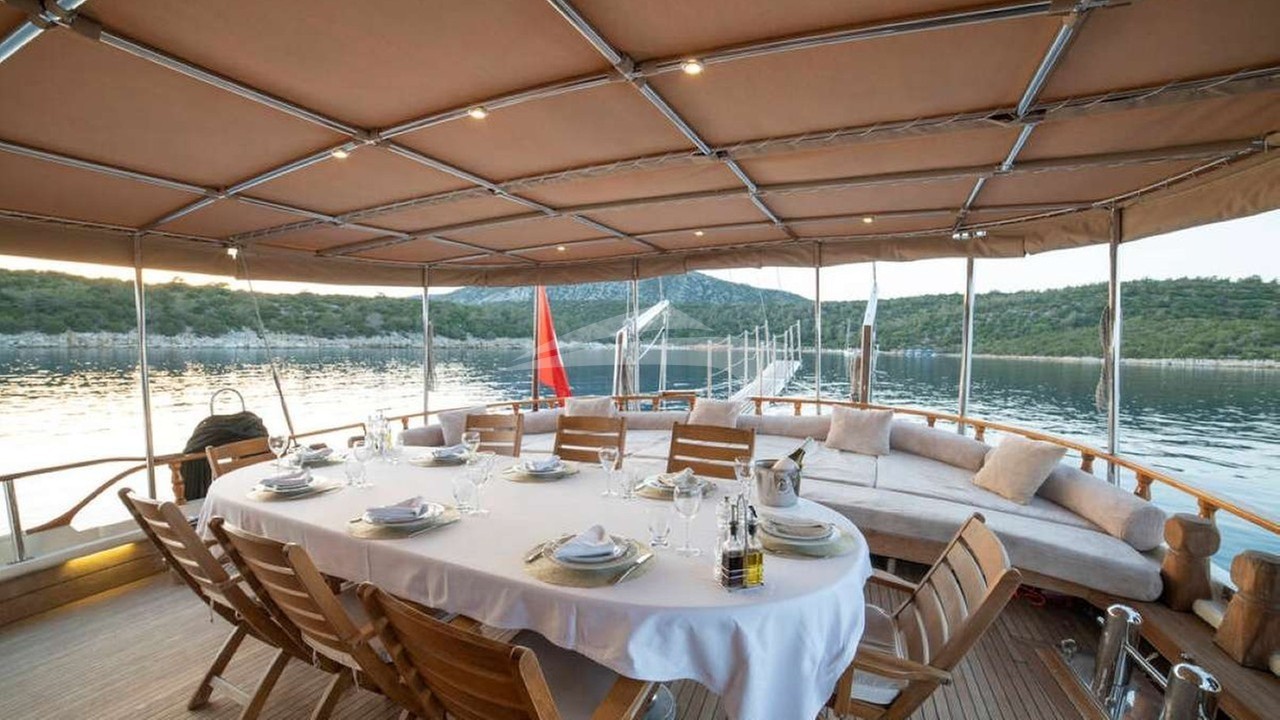 Torini Yacht Charter is a 98' superyacht built by Custom in 2000. She sleeps 10 and holds 5 crew and is located in East Mediterranean and East Mediterranean. She can be booked for a private luxury charter at a rate of $24,463 per week. Please check with your Denison Charter Specialist for more info.