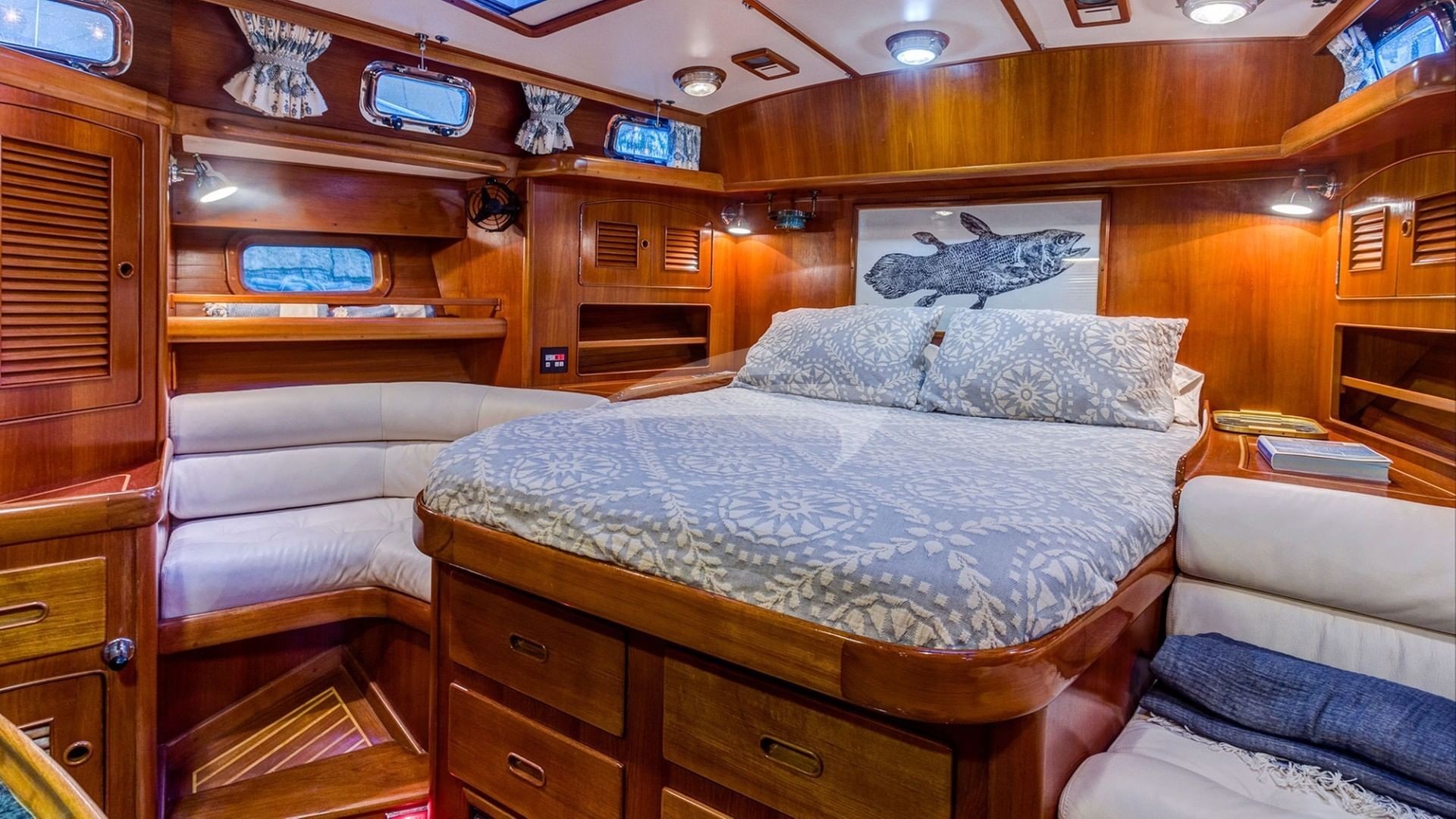 Tyche Yacht Charter is a 59' superyacht built by Custom in 1990. She sleeps 4 and holds 2 crew and is located in East Coast United States and East Coast United States. She can be booked for a private luxury charter at a rate of $17,500 per week. Please check with your Denison Charter Specialist for more info.