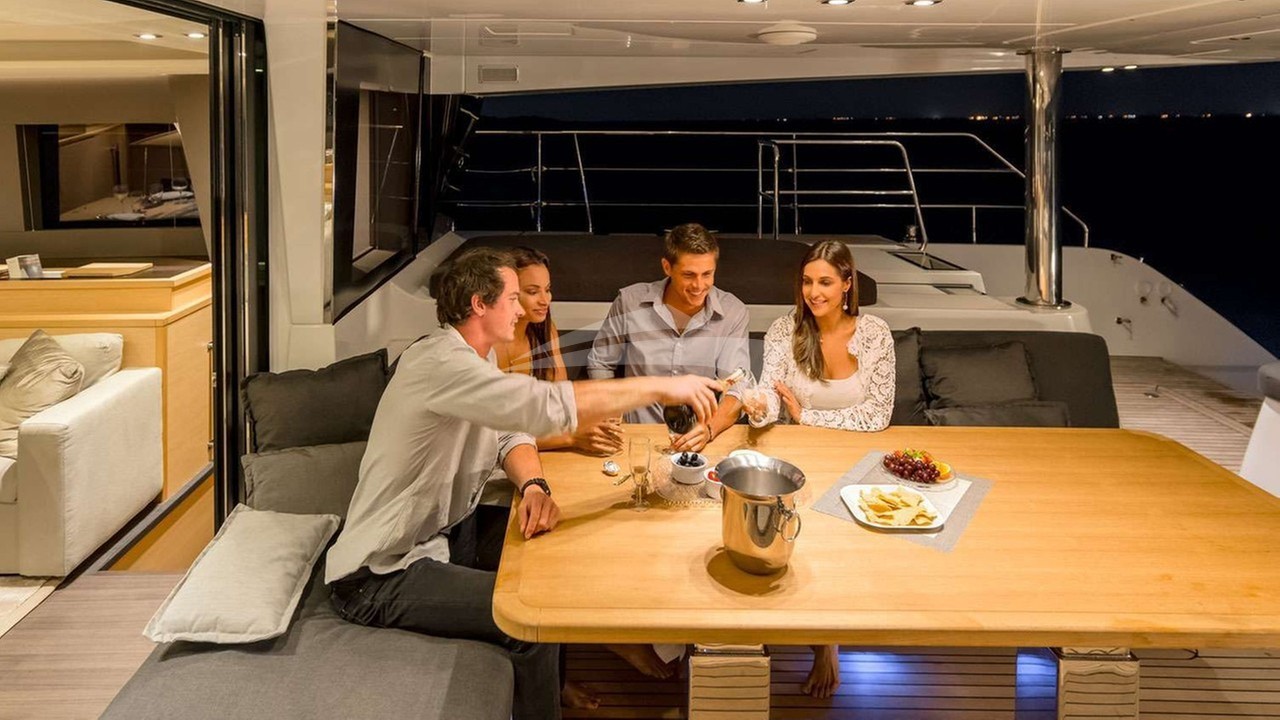 Ultra Yacht Charter is a 63' superyacht built by Lagoon in 2017. She sleeps 8 and holds 2 crew and is located in Caribbean and Caribbean. She can be booked for a private luxury charter at a rate of $34,000 per week. Please check with your Denison Charter Specialist for more info.