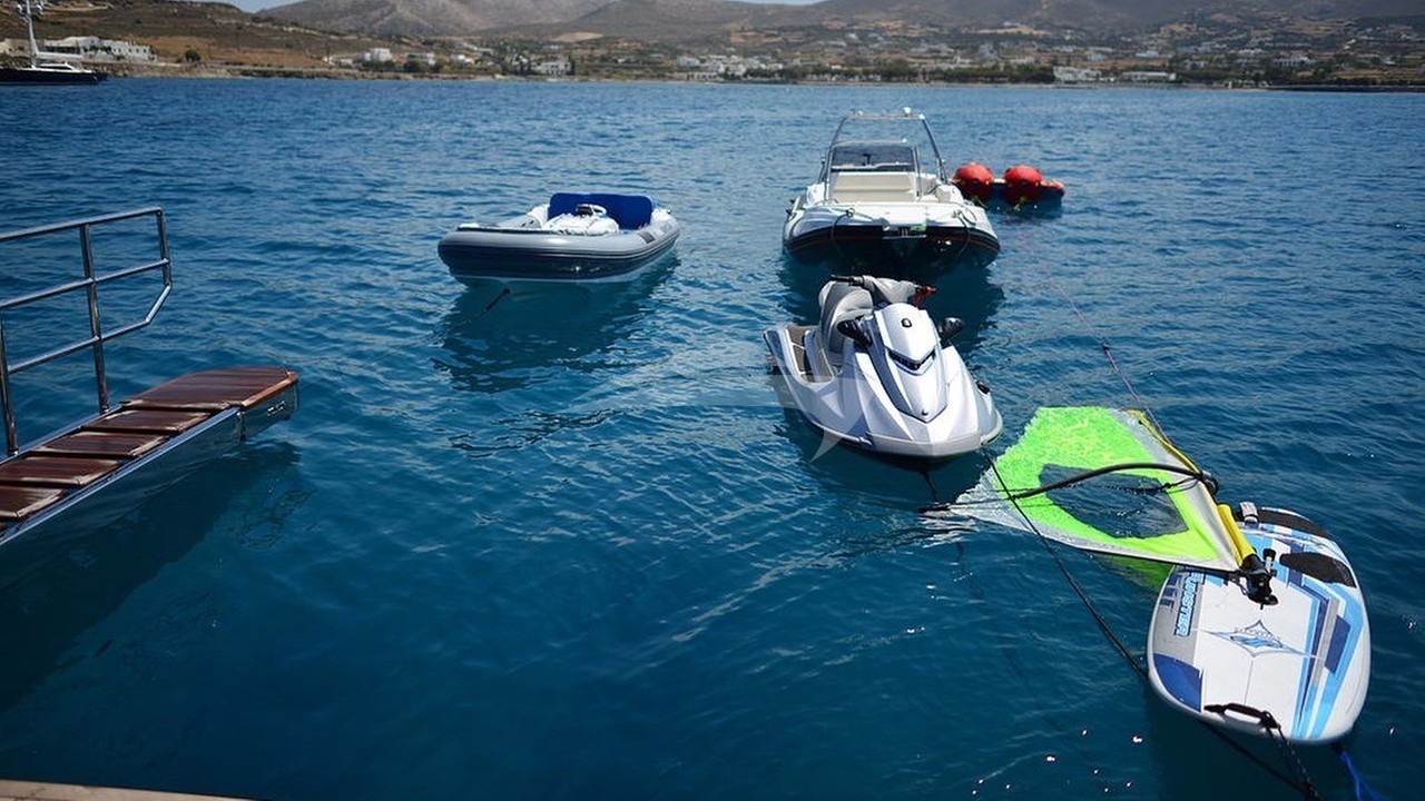 UNEXPECTED is a floating water sports haven, featuring an impressive array of toys. Thrill-seekers will delight in the stand-up jet ski, water skis, and various inflatable water toys. For underwater exploration, diving and snorkeling gear are readily available. Two high-powered tenders ensure easy shore access and exciting excursions.