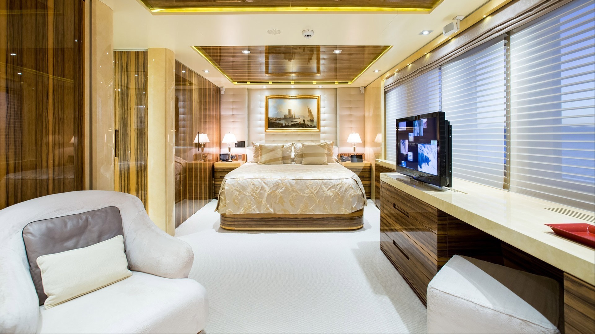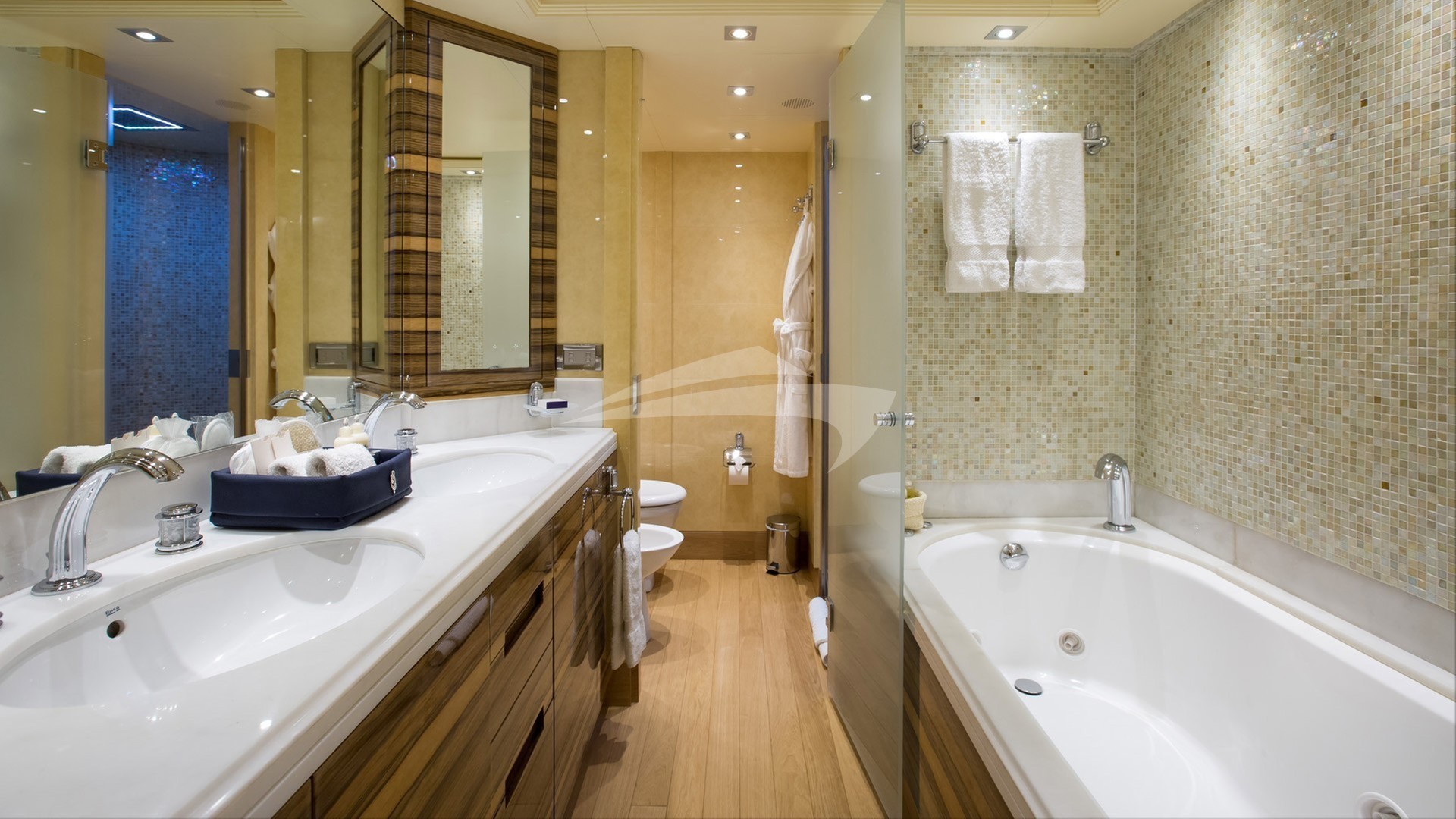 Accommodating up to 12 guests in 6 lavishly appointed suites, VERTIGO provides the perfect blend of privacy and social spaces. The luxurious primary suite features a queen-size bed and en-suite facilities, while the remaining cabins offer a mix of double and twin configurations, all with private bathrooms.