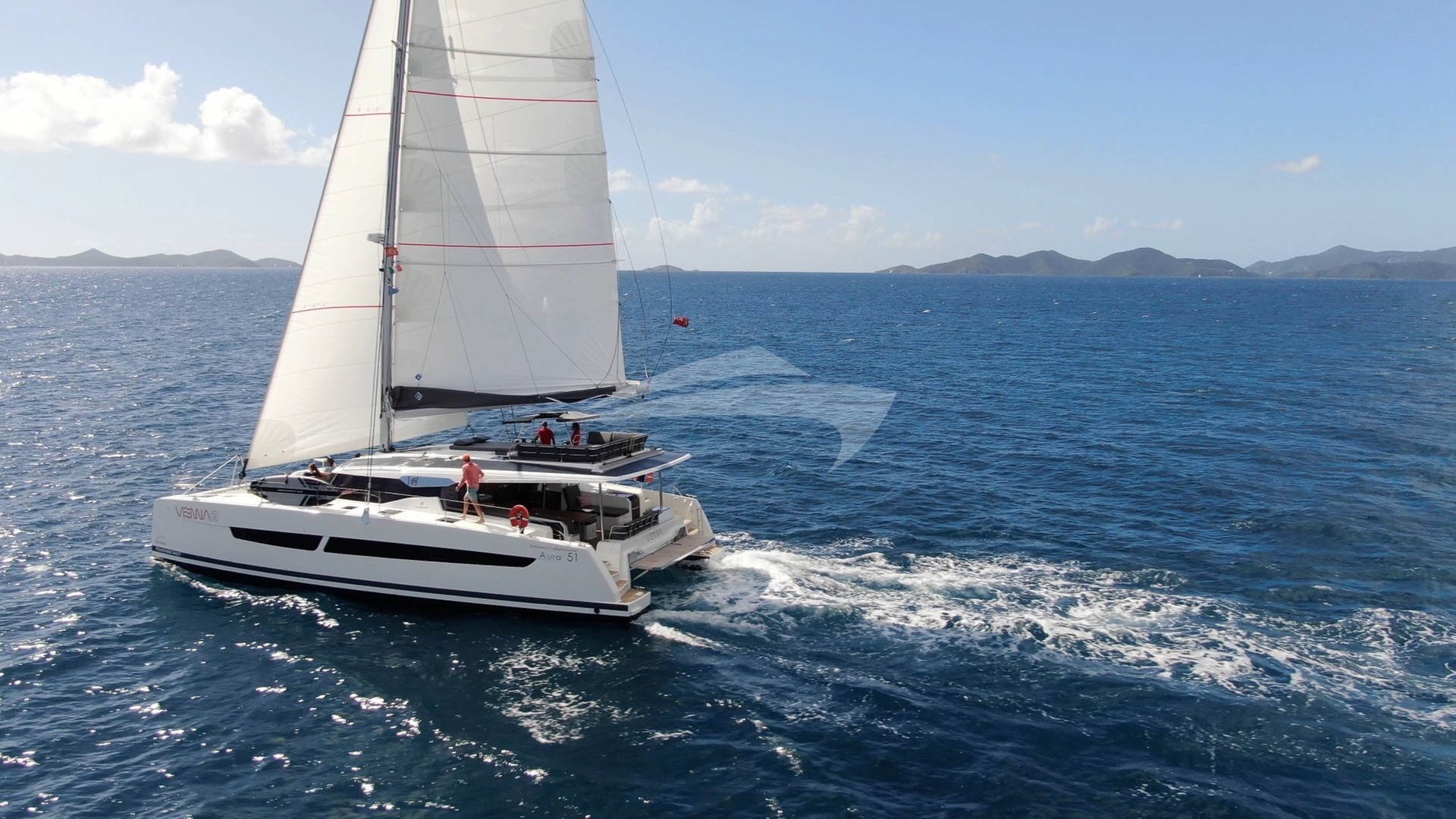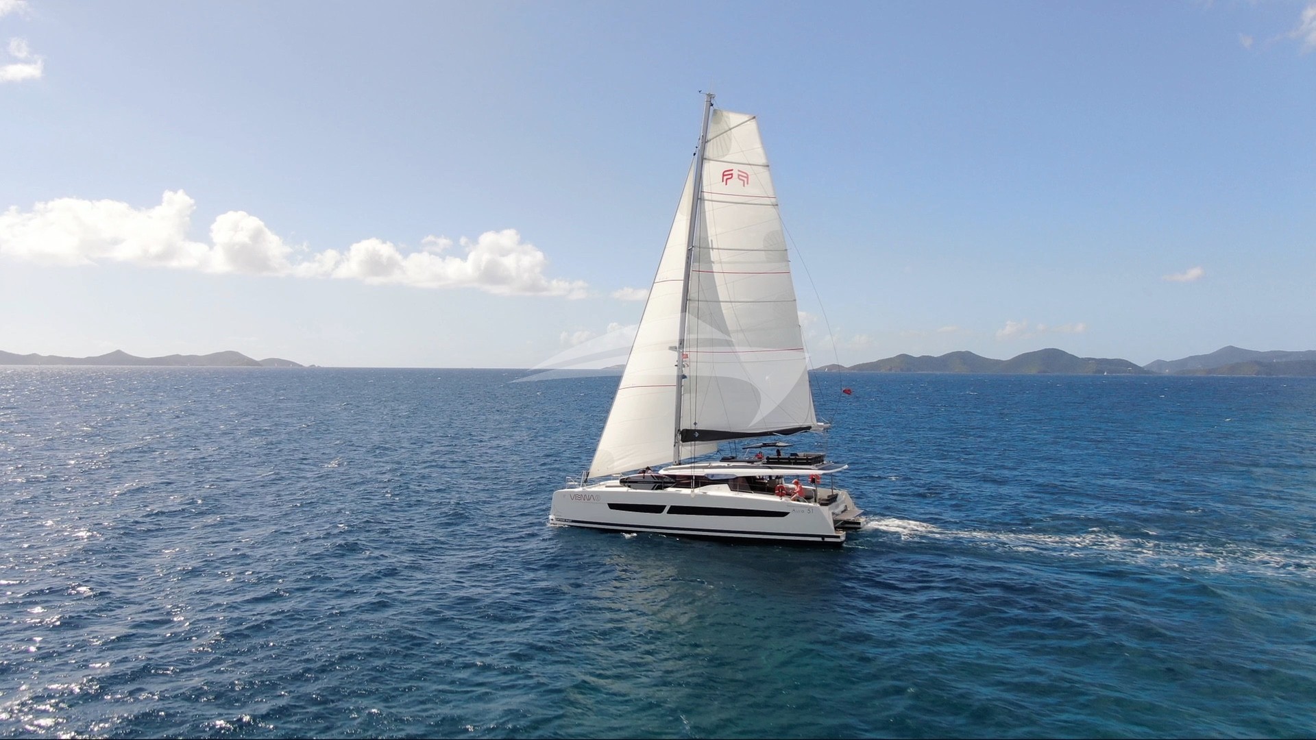 The brand new Fountaine Pajot Aura 51 is now for charter in the Caribbean. Based on Tortola in the British Virgin Islands, sailing yacht VIENNA is for charter. Made available to charter guests as a full-service crewed luxury catamaran yacht, VIENNA is the first Fountaine Pajot Aura 51 in the Caribbean, available for charter with a luxury “pocket megayacht” experience.