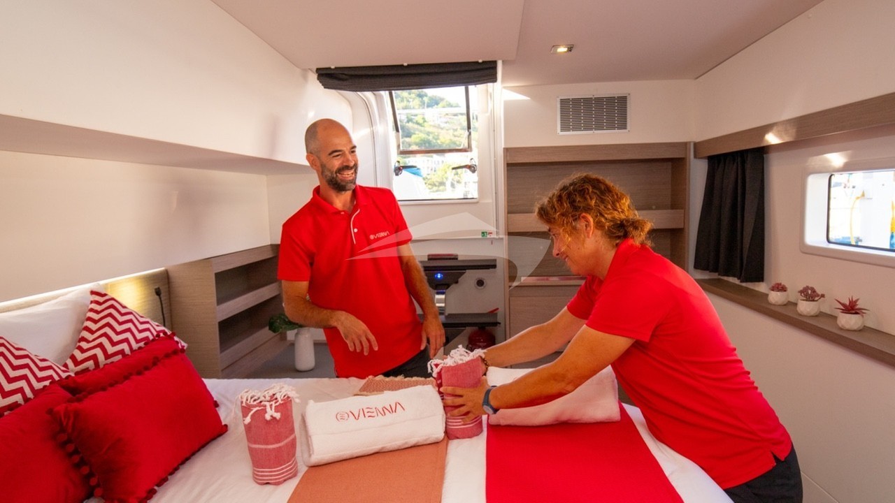 Equipped as a “pocket megayacht” with every possible amenity, comfort and sports equipment, “VIENNA” is now available for bookings as one of the first Fountaine Pajot Aura 51 models. Her multilingual crew, Captain Valentina and Chef Simone from Italy, will cater to the highest expectations, offering an all-inclusive F&B package, gourmet culinary experiences, water sports and sailing instructions, and memorable moments for every occasion and preference.